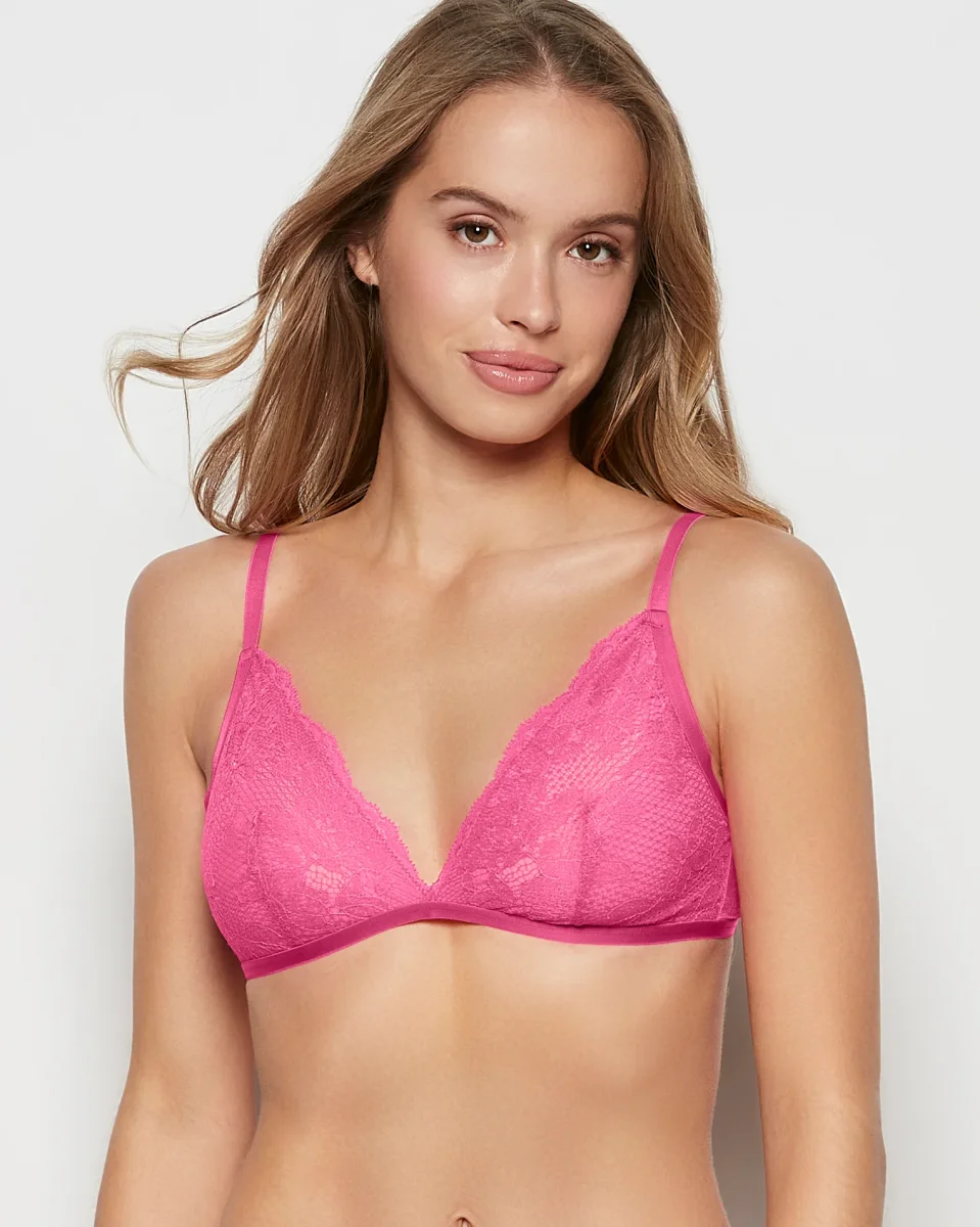 Lightweight and so sexy! This Lace Bralette in Raspberry Rose is designed with soft lace and a wireless body, perfect for any day. Allover Lace Design Plunging neckline with unlined cups Adjustable bra straps Imported polyamide, elastane