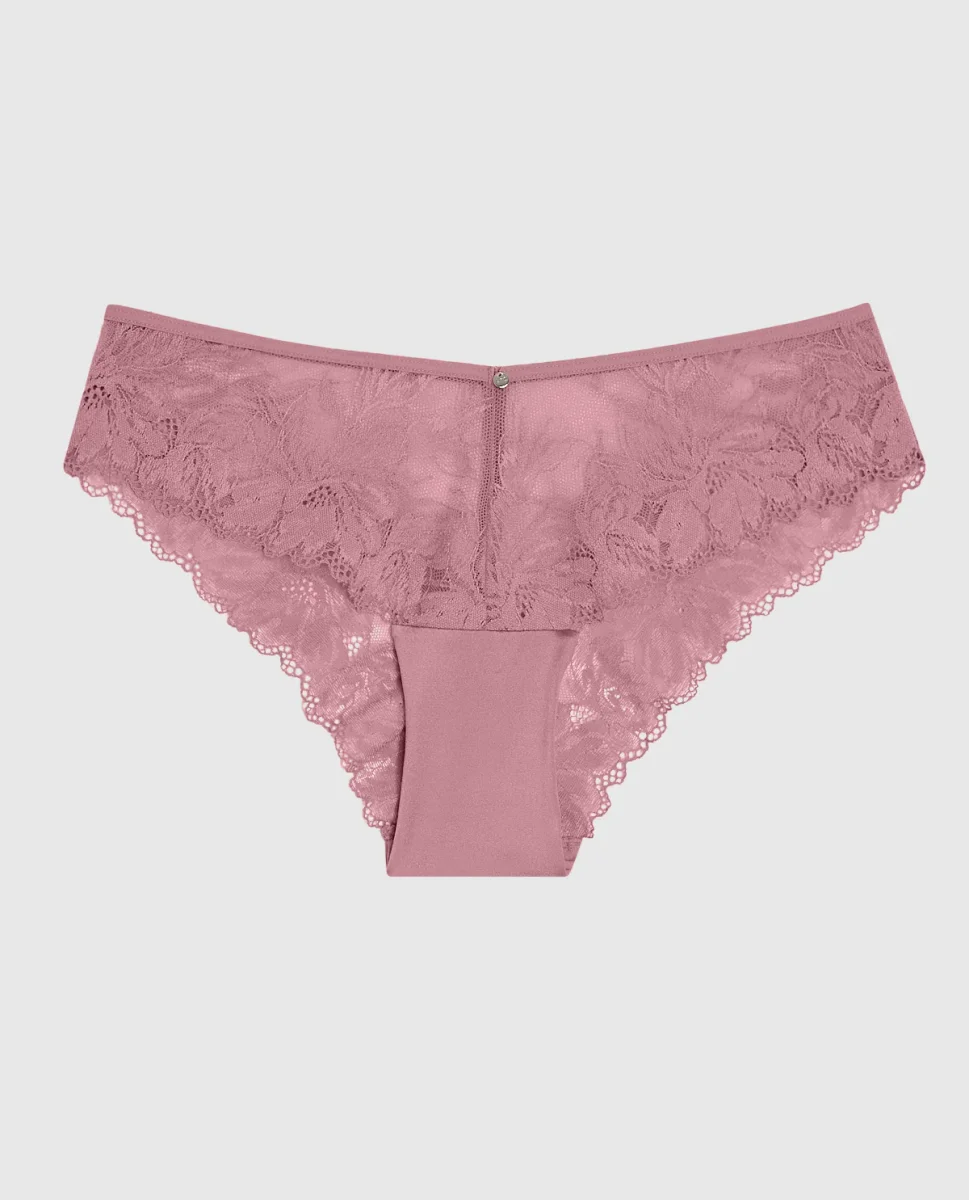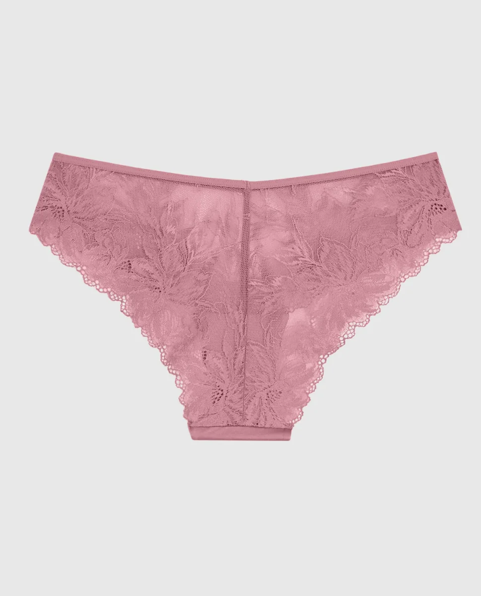 Elevate your everyday. Our Sheer Mauve Lace Cheeky Panty is sure to be your new go-to. It is made with ultrasoft materials and delicate lace for an instant feminine feel. Fits true to size.