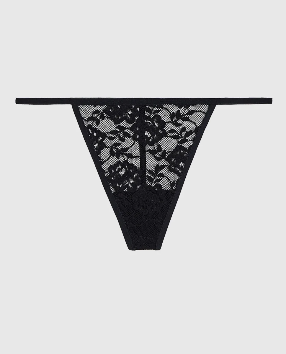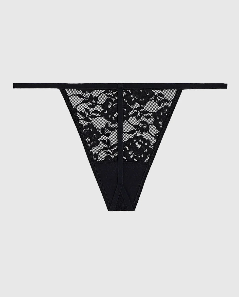 You will love this lace g-string with minimal coverage, sheer lace, string sides and a low-rise fit. Imported polyamide, elastane.