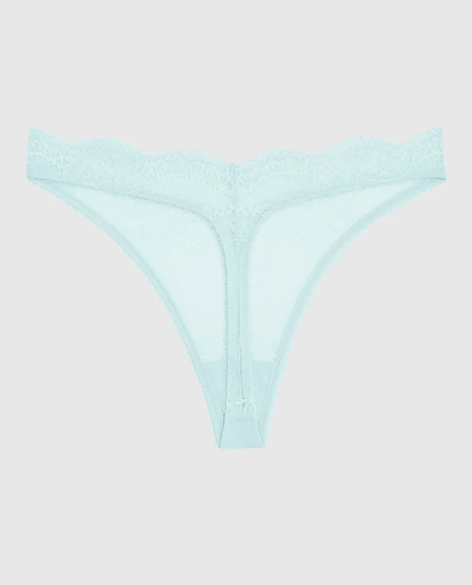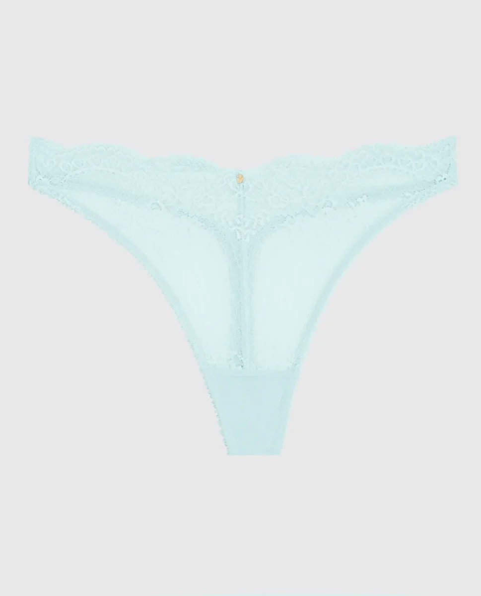 Lace High Leg Thong Panty in Vista Blue