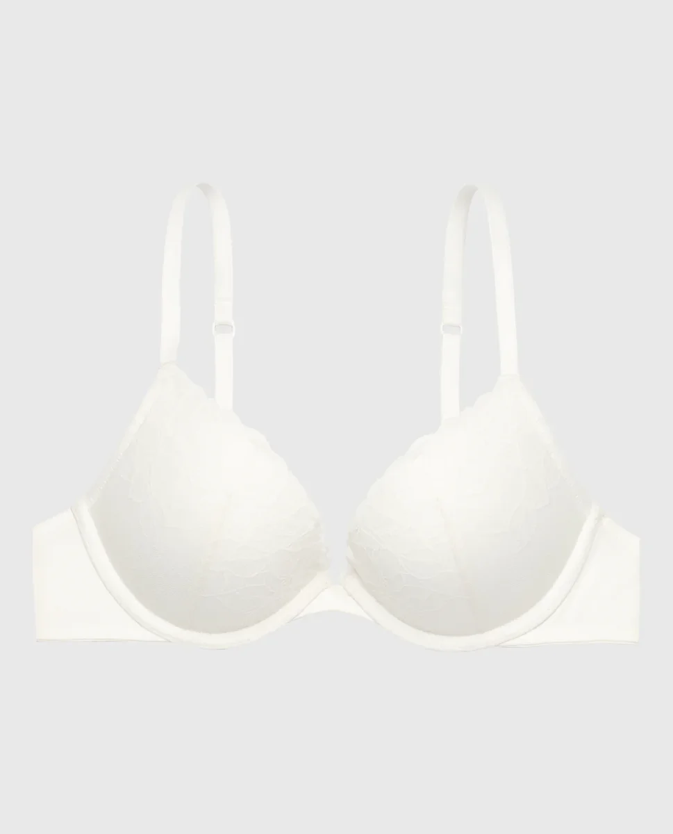 Meet your newest obsession. Our Ivory Blue Lace Push Up Bra is sure to be your next go-to. It is designed with an intricate lace pattern for that instant feminine feel. . Smooth Cups Underwire for Support Adjustable bra straps that can be worn classic or racerback Imported polyamide, elastane