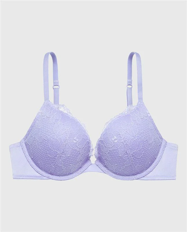 The Lace Push Up Bra in Periwinkle Dream combines thoughtful design and everyday function. Part of the obsession collection, crafted in premium microfiber, featuring a push up lining for a smooth feel, with a underwire design for gentle support, and a back-close closure.