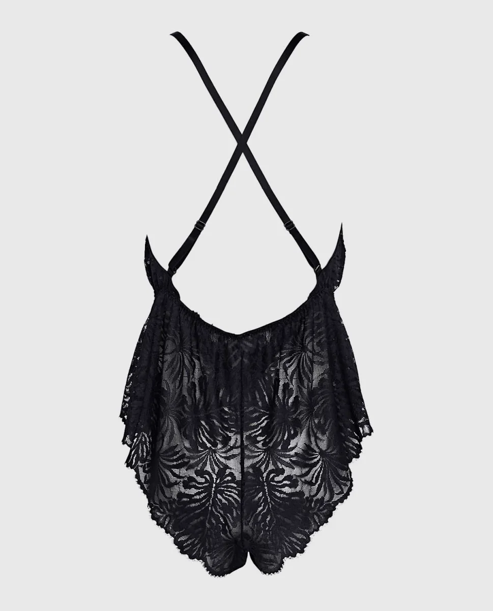 Make your nighttime routine a little more luxurious with this allover lace romper.