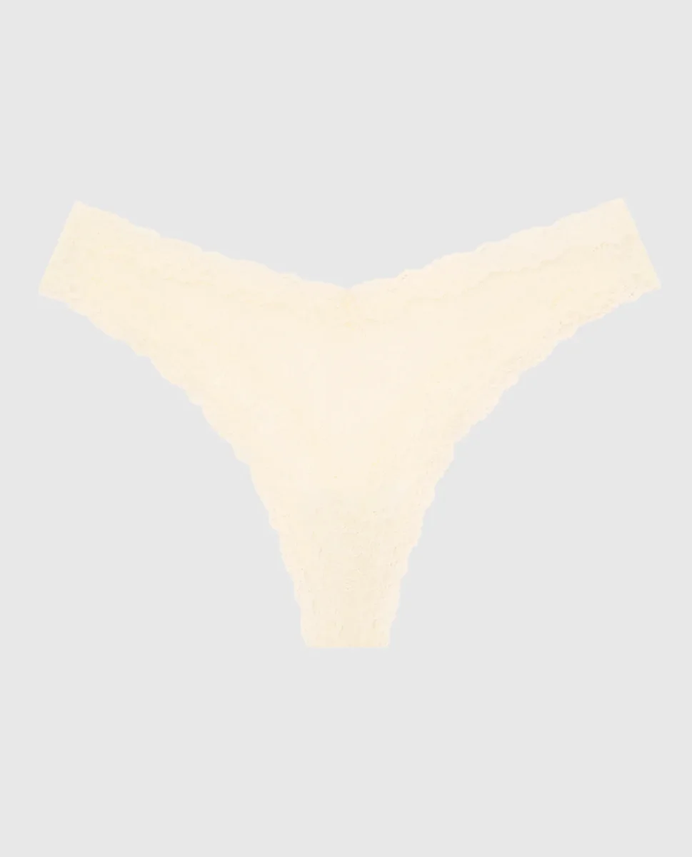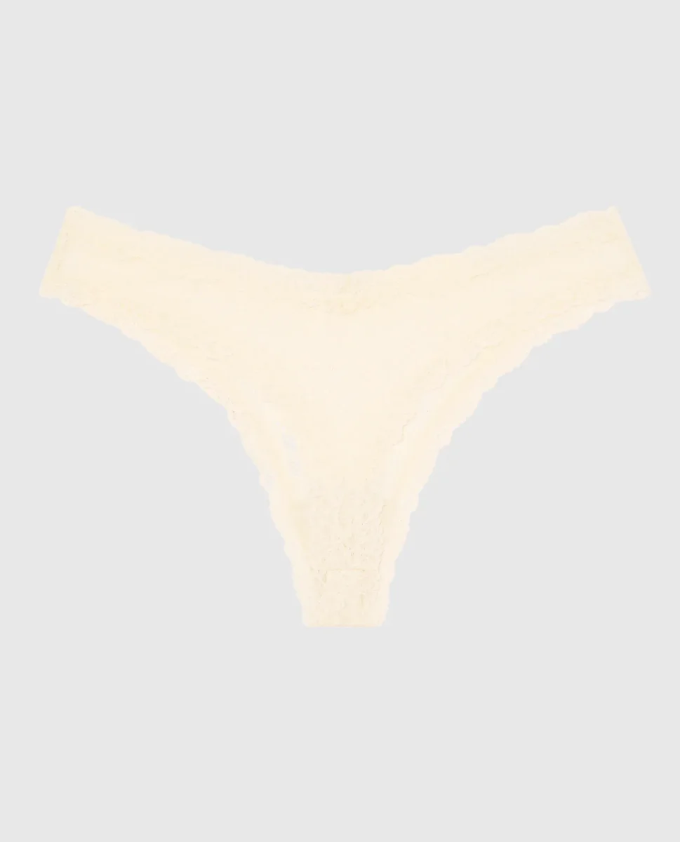 The perfect panty! This thong panty has minimal coverage and is designed with an allover lace body and trim to make everyday feel more elevated. Imported polyamide, elastane.