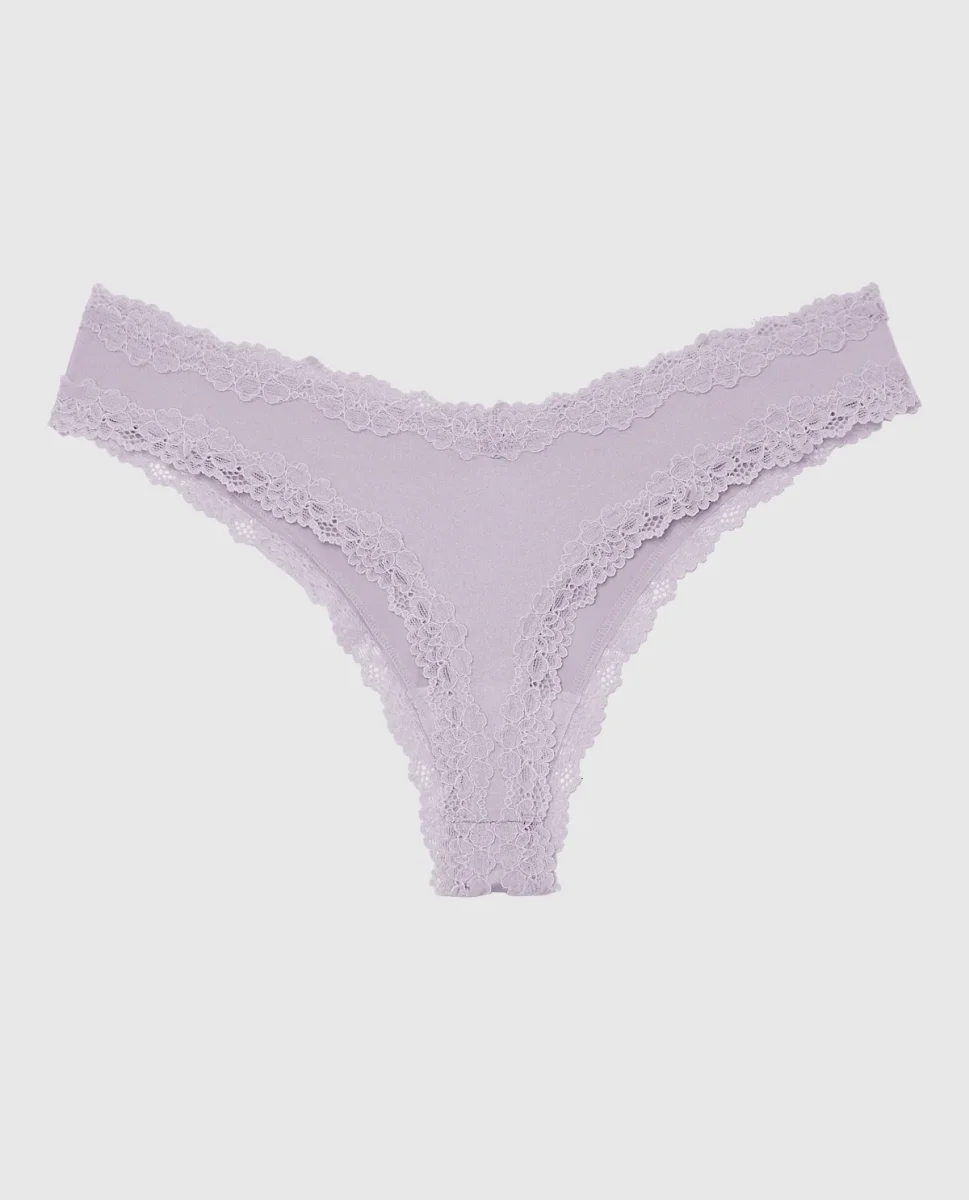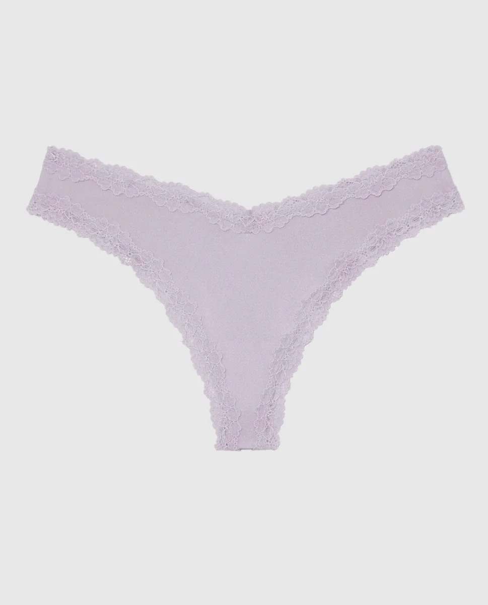 The perfect panty! This thong panty has minimal coverage and features a delicate lace trim to make everyday feel more elevated. Imported polyamide, elastane.