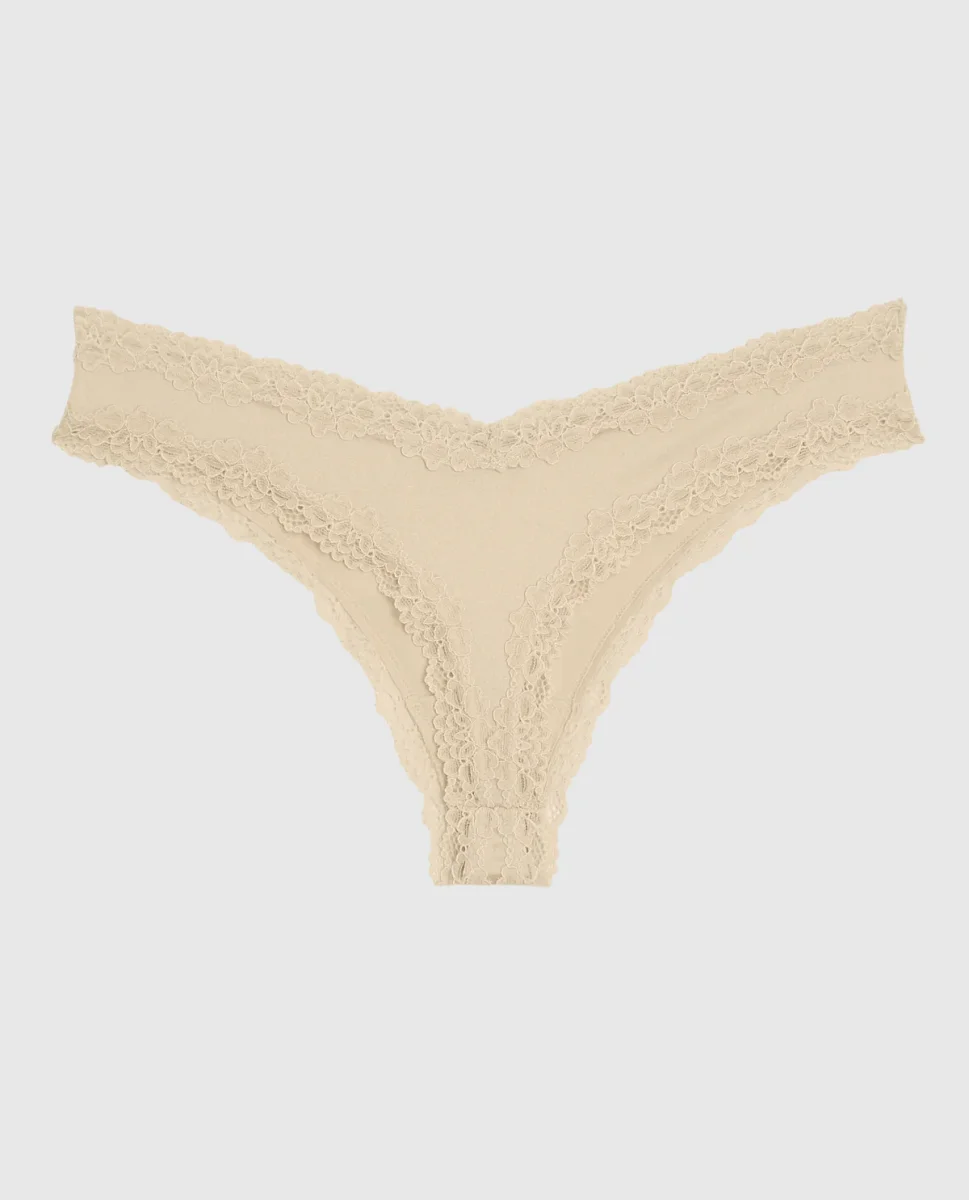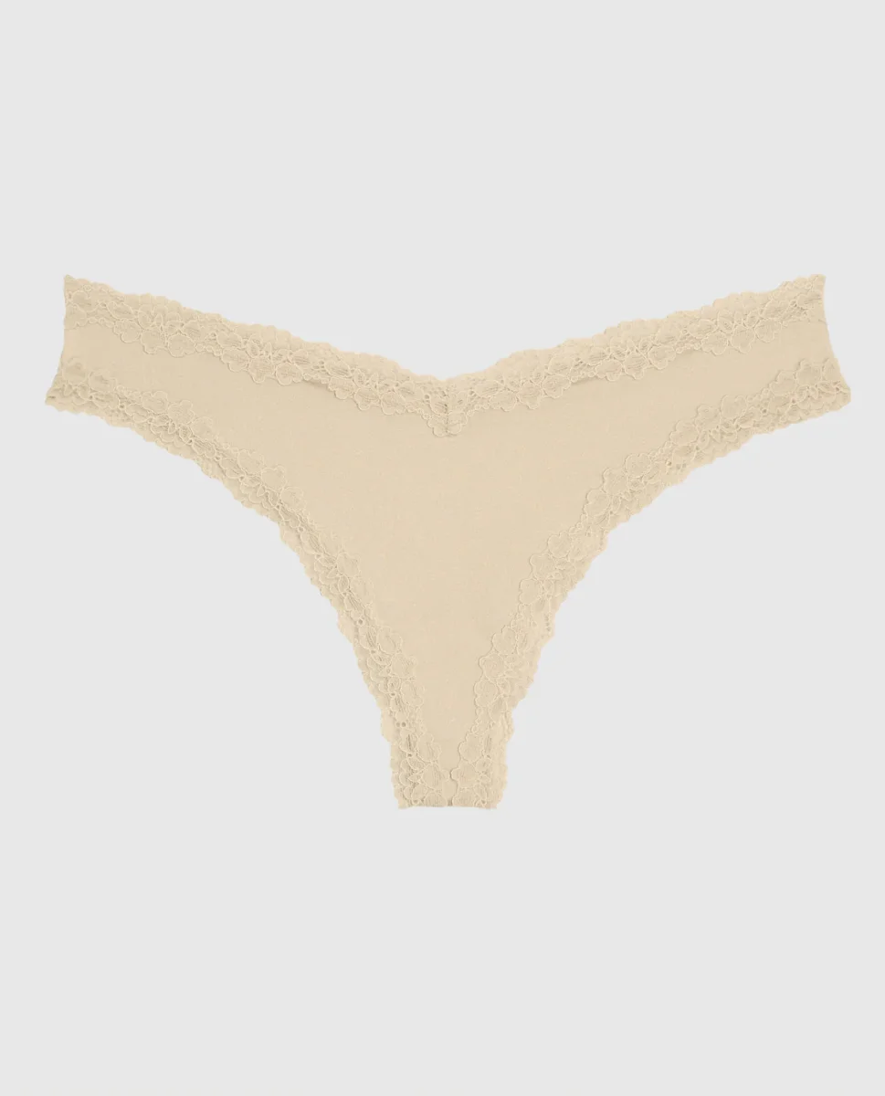 The perfect panty! This thong panty has minimal coverage and features a delicate lace trim to make everyday feel more elevated. Imported polyamide, elastane.