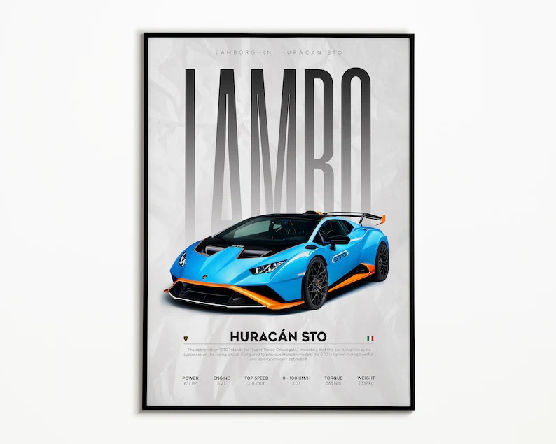 - Collectible Limited Edition: Own an exclusive piece of digital art that mirrors the exclusivity of the Huracán STO. Each poster is a unique representation of this rare hypercar.