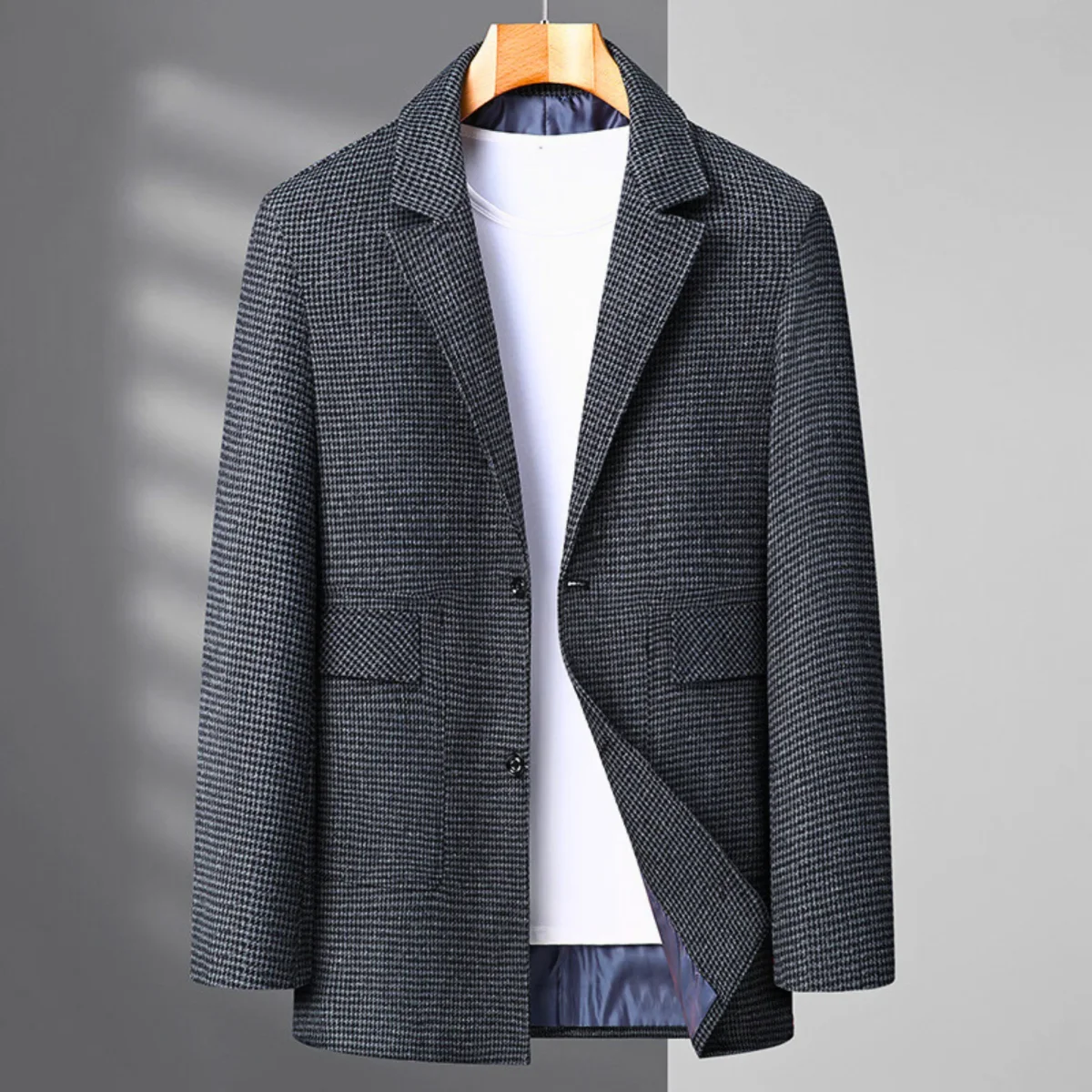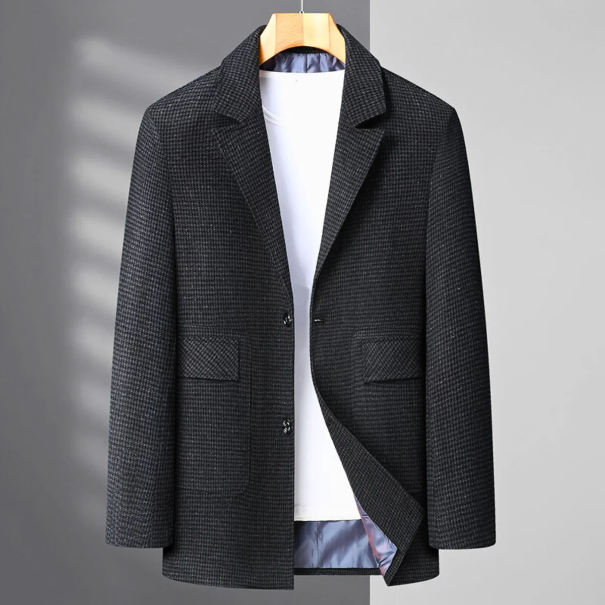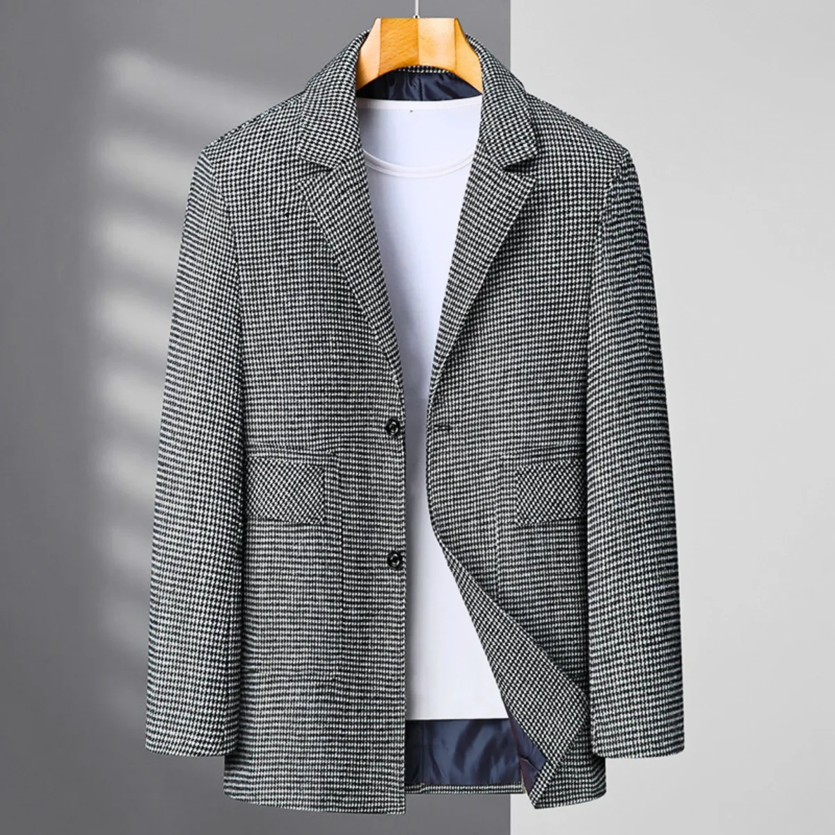 Fabriqué en laine de première qualité, offrant une chaleur légère avec une coupe ajustée légèrement structurée. Définie par sa texture à carreaux intemporelle et sa silhouette propre et polyvalente, elle apporte un style discret à chaque garde-robe moderne.