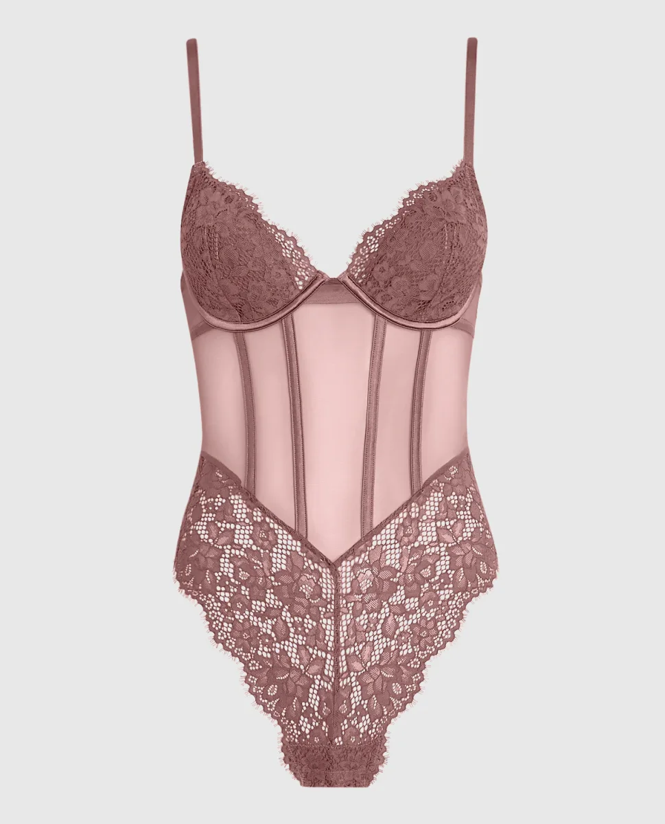 Lightly Lined Lace Bodysuit in Dusty Cedar