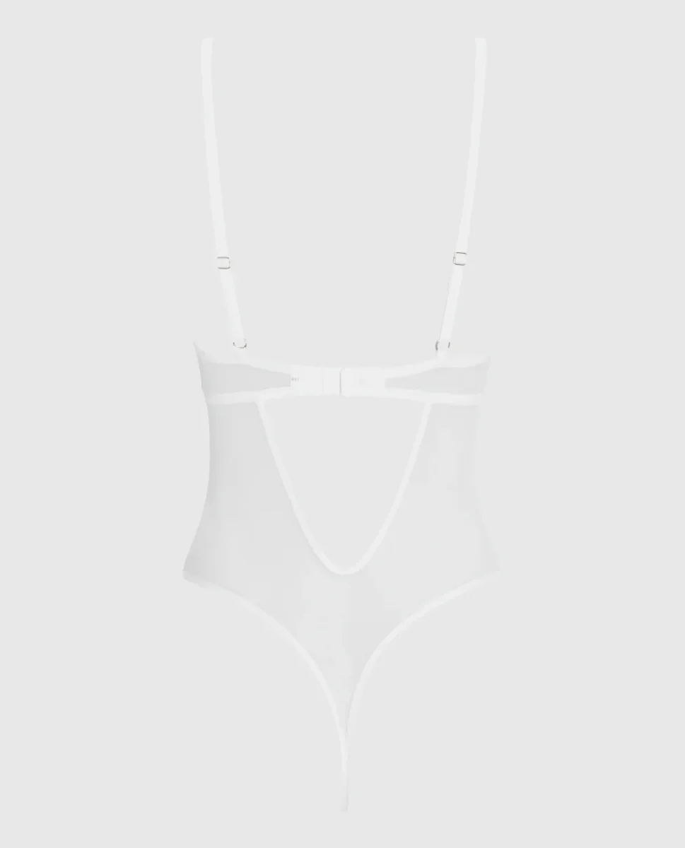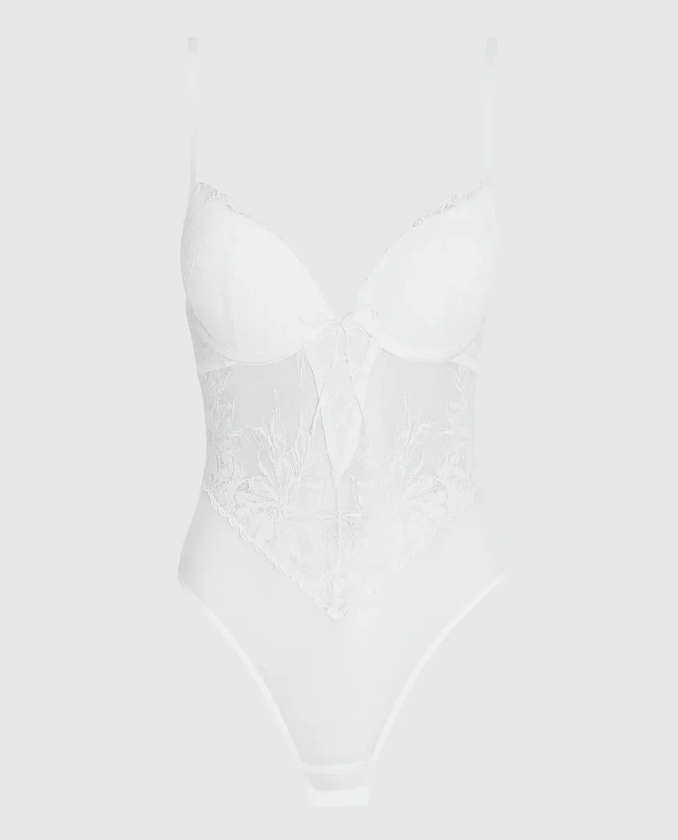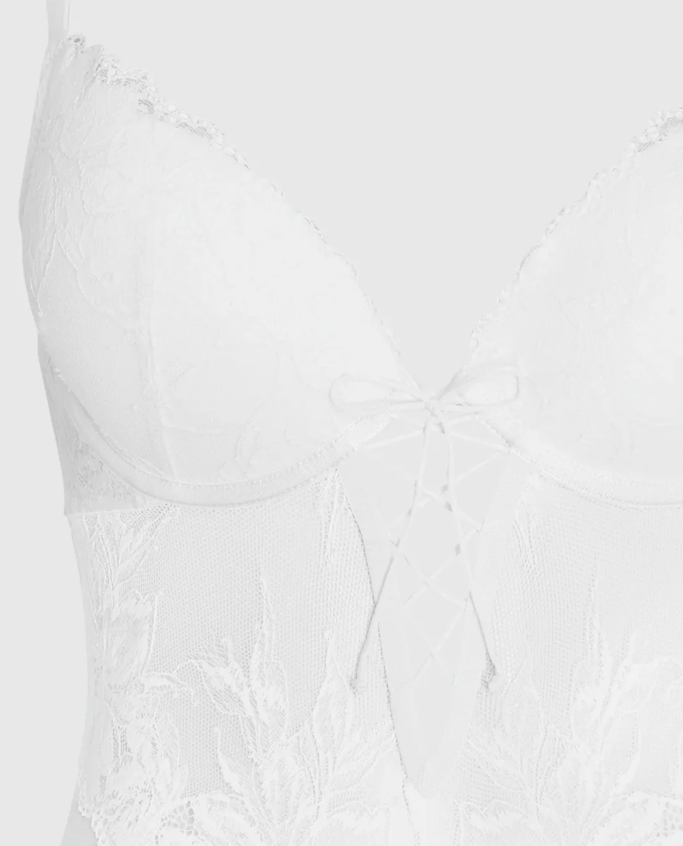 This stunning Ivory Lighty Lined Lace Bodysuit features our latest lace design, accented by a plunging neckline and an eye-catching back cutout. The underwired, contour demi cups offer subtle lift and support, while the tie-up closure at the front adds a touch of elegance to complete the luxurious feel. /p>