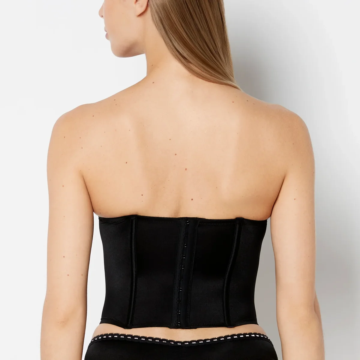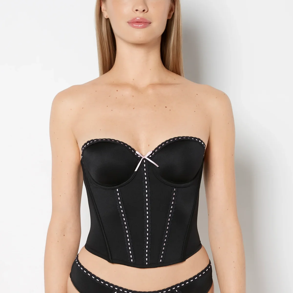 Lightly Lined Microfiber Bustier with Ribbon Detailing in Tuxedo Black