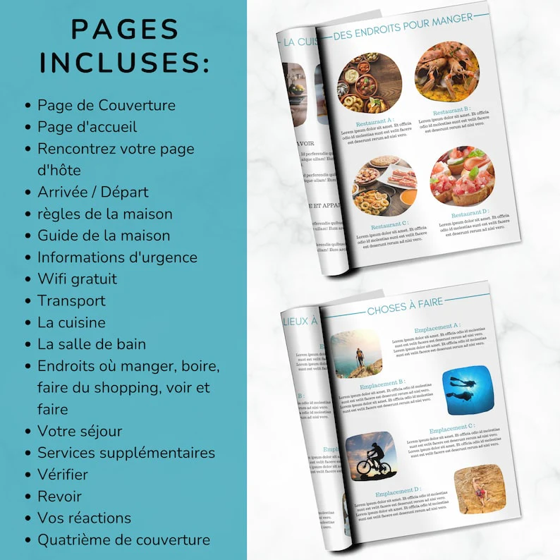 Vous cherchez un moyen de rendre l’expérience de vos invités Airbnb encore plus mémorable ? Ne cherchez pas plus loin que notre exceptionnel Livret d’accueil Airbnb personnalisable ! Conçu spécifiquement pour les hôtes exigeants, ce modèle numérique est votre clé pour créer un guide de bienvenue personnalisé et professionnel pour vos invités. Grâce à une personnalisation transparente, vous pouvez facilement adapter l’expérience aux visiteurs de votre Airbnb. Améliorez votre accueil, impressionnez vos invités et gagnez du temps avec notre Livret d’accueil Airbnb personnalisable. Redéfinissez votre approche de l’hospitalité : commandez dès maintenant et préparez le terrain pour un succès inégalé dans l’hébergement Airbnb !