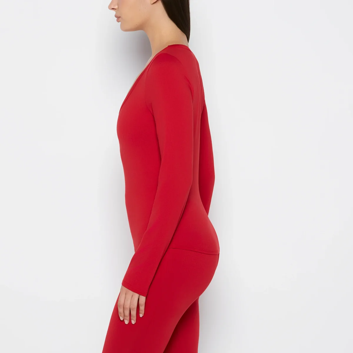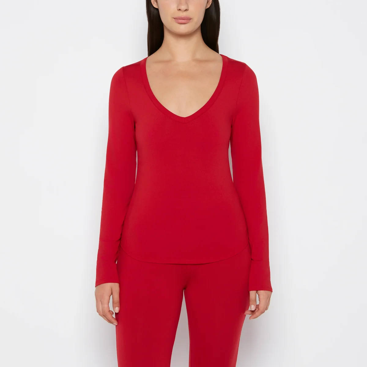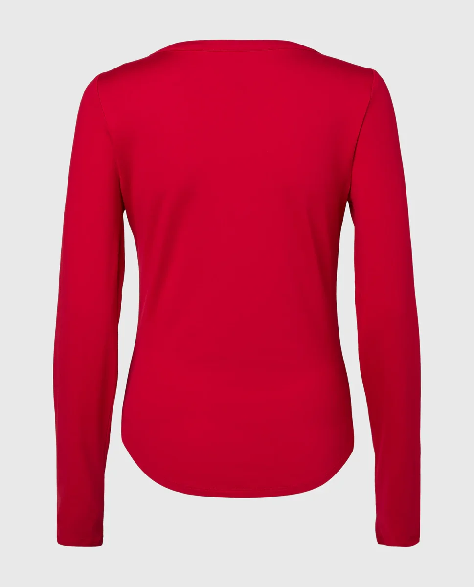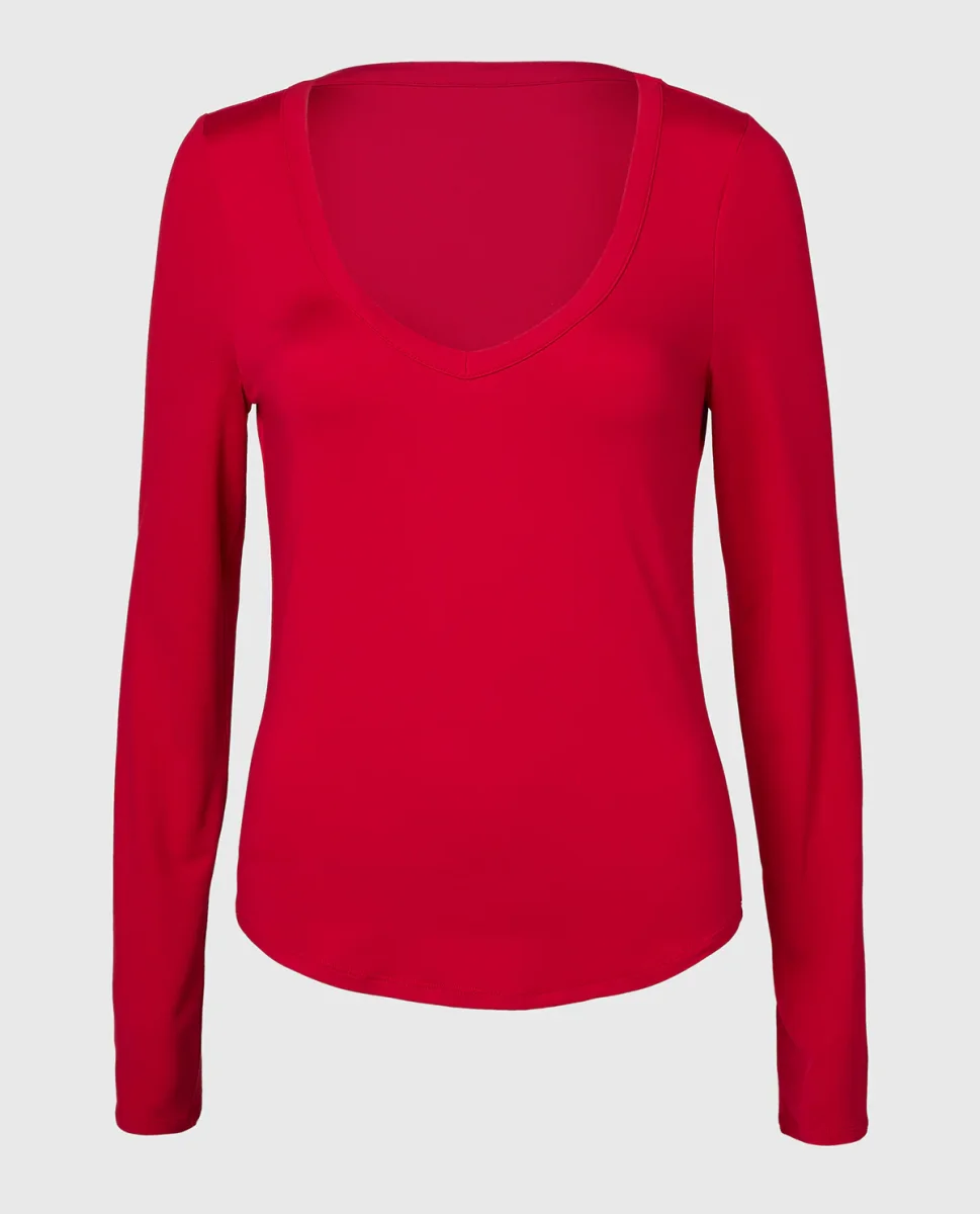 Long sleeve brushed jersey v-Neck top in Crimson