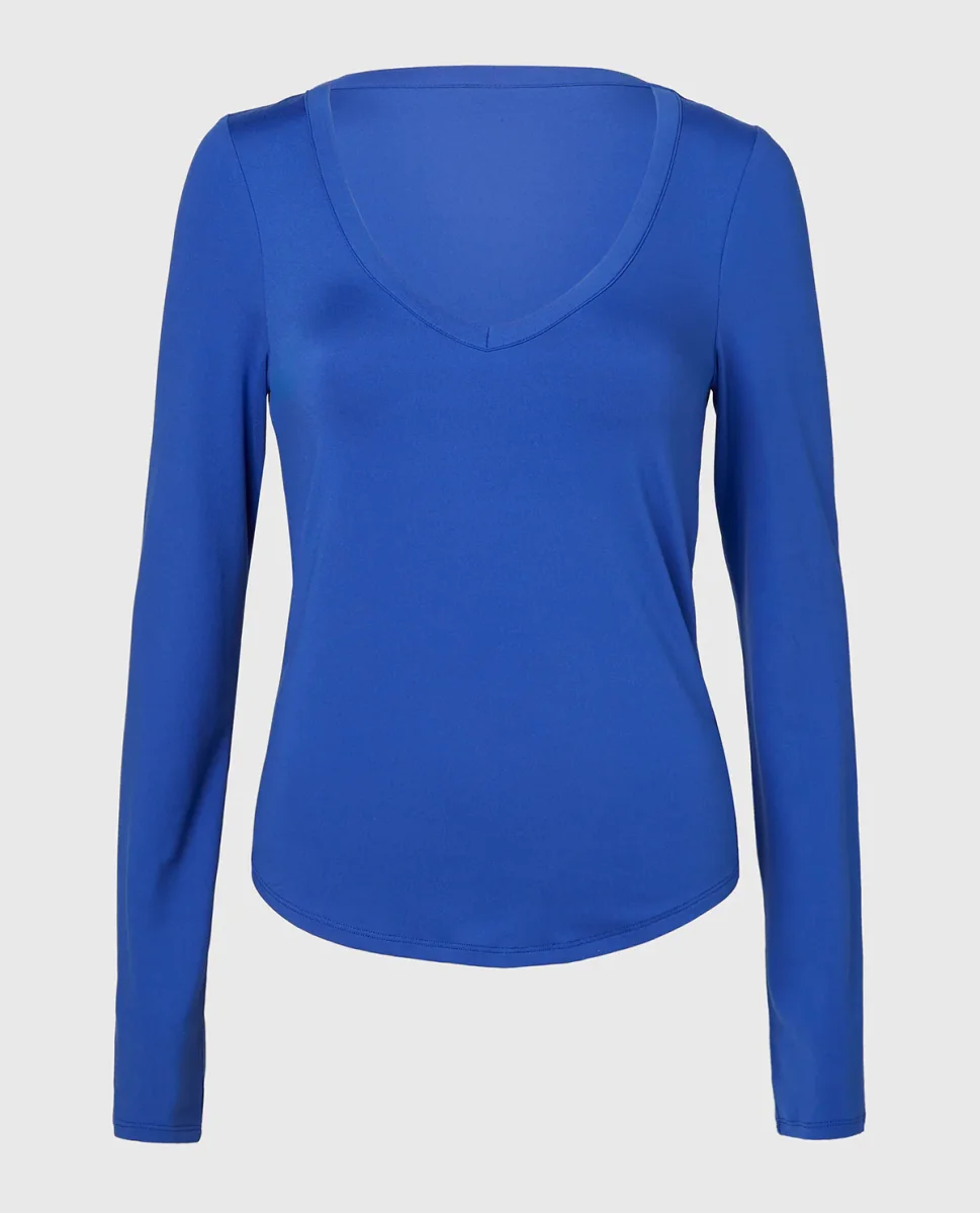 Long sleeve brushed jersey v-Neck top in Dazzling Blue