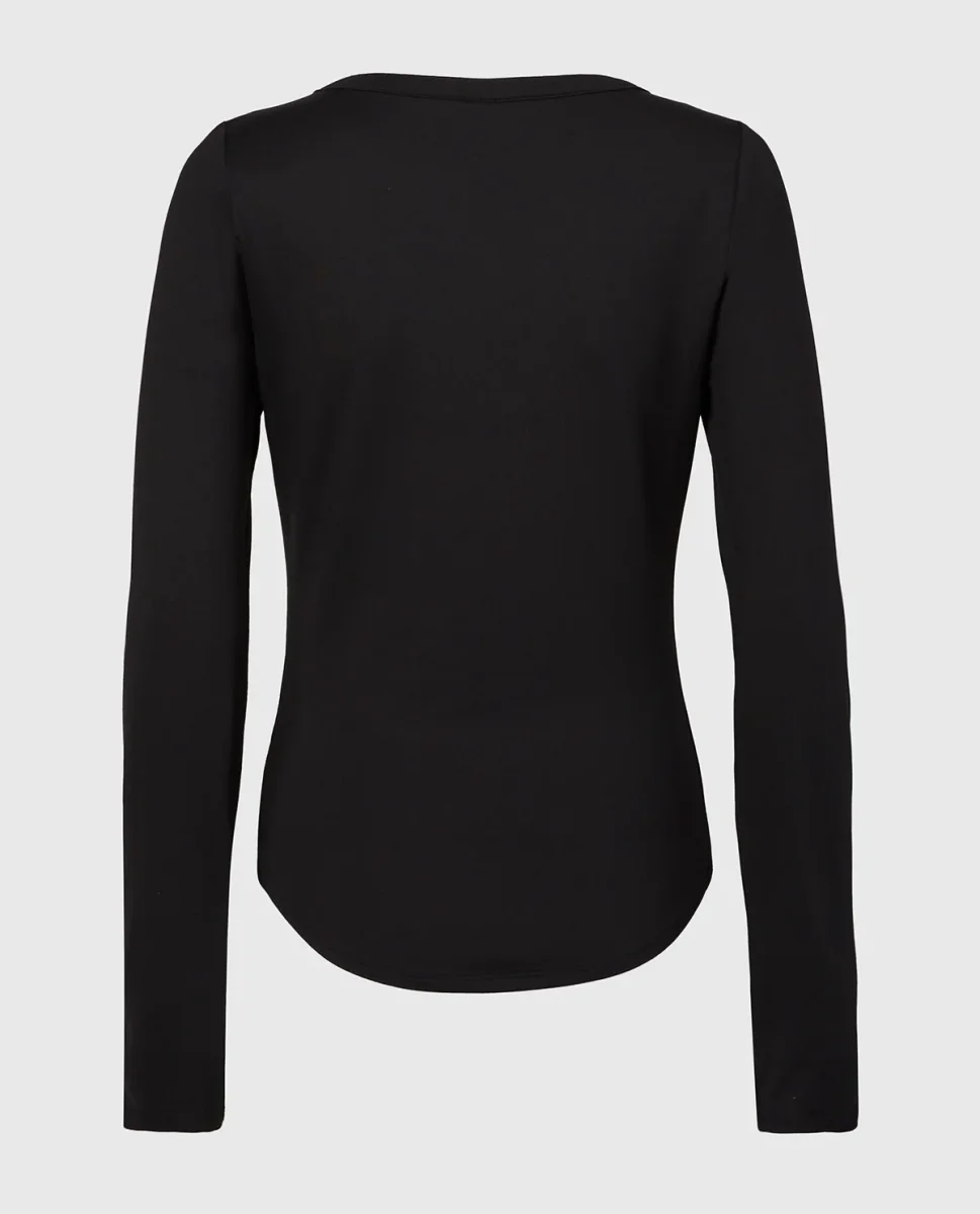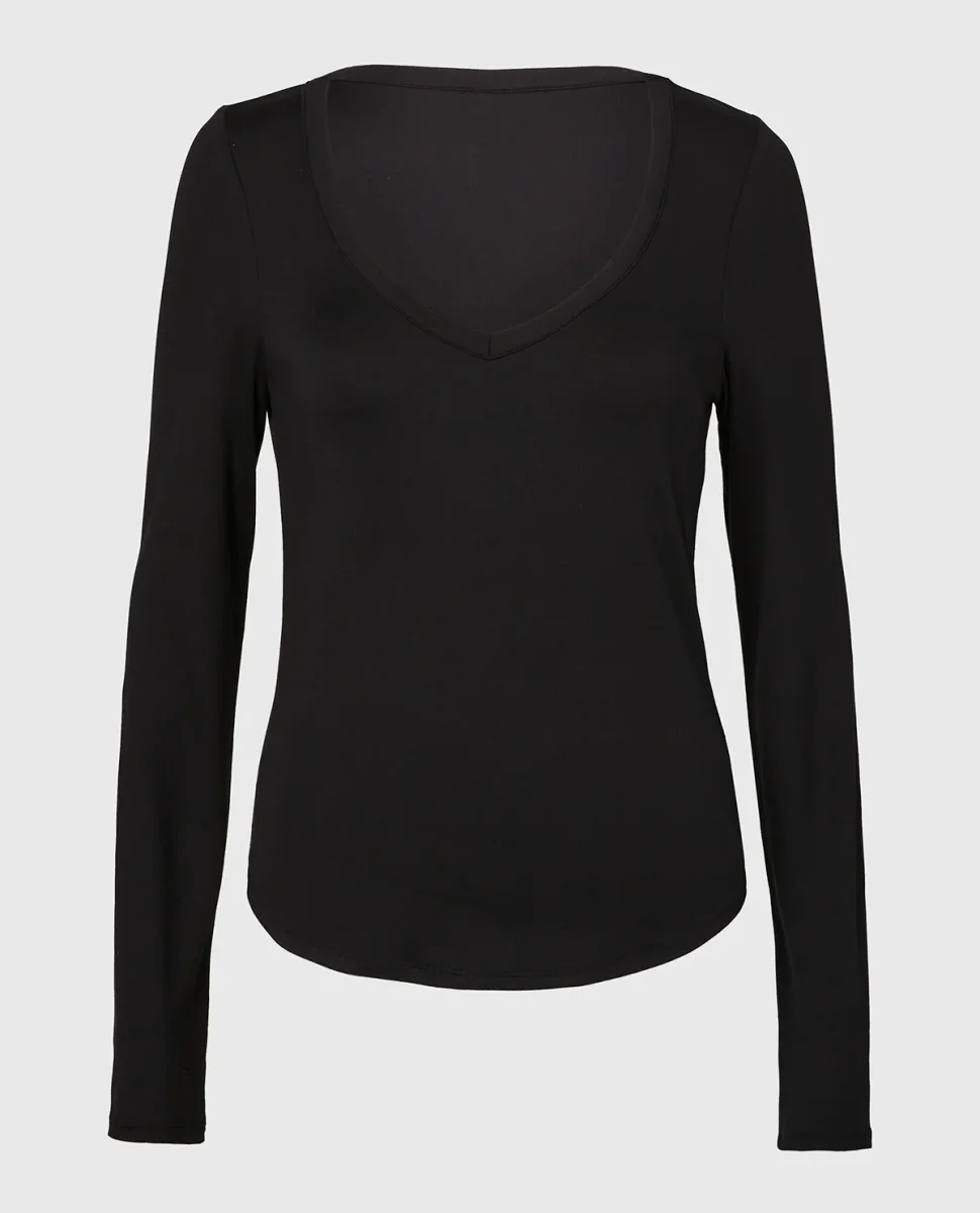 The Long sleeve brushed jersey v-Neck top in Tuxedo Black brings understated style and comfort together. Part of the sleepwear collection, crafted in premium polyester. A timeless addition to your lingerie lineup.