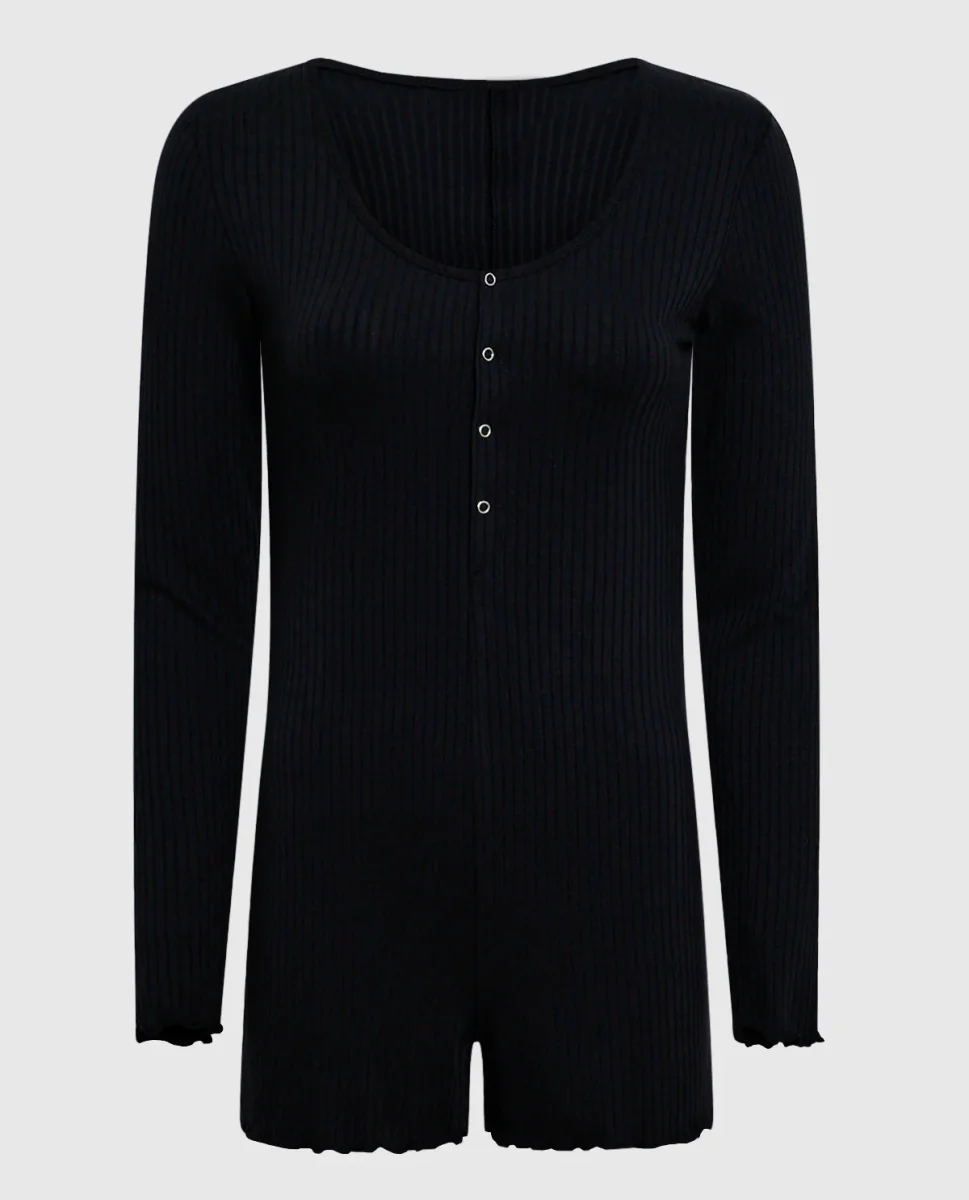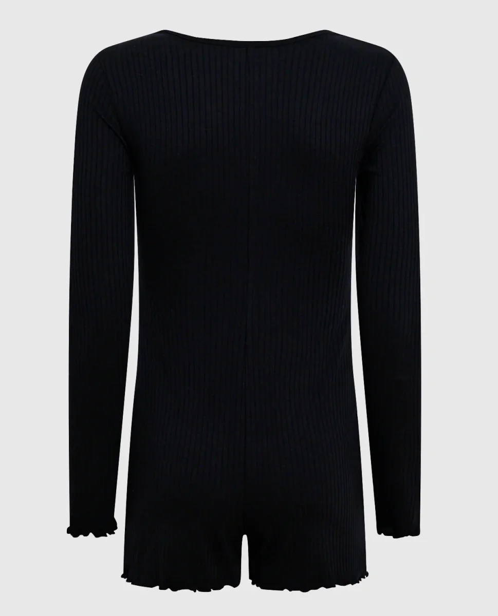 Long Sleeve Ribbed Onesie in Smoulder Black
