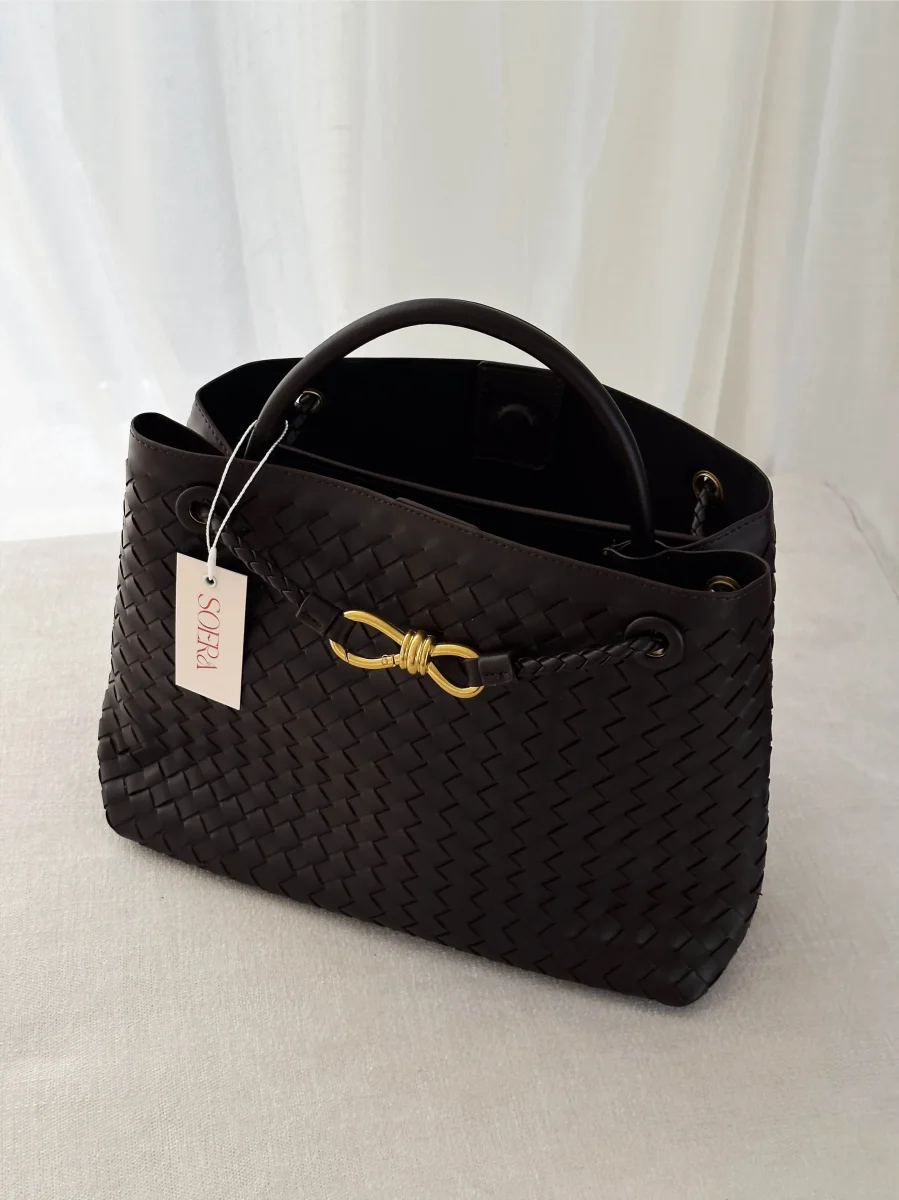 Nous vous présentons notre Sac tissé Lucia, un mélange raffiné d’élégance, de polyvalence et de savoir-faire. Fabriqué avec soin en cuir vegan de haute qualité, ce sac présente une texture joliment tissée qui élève n’importe quelle tenue tout en promouvant des choix de mode durables. Conçu pour les journées décontractées comme pour les moments spéciaux, il passe sans effort d’une promenade en ville à un rendez-vous romantique. Avec sa silhouette intemporelle et son intérieur spacieux, le Sac tissé Lucia offre à la fois style et praticité, en faisant un élément essentiel de chaque garde-robe moderne. Disponible en deux tailles pour répondre à vos besoins — que vous préfériez un sac compact pour tous les jours ou un tote plus grand pour plus d’espace.