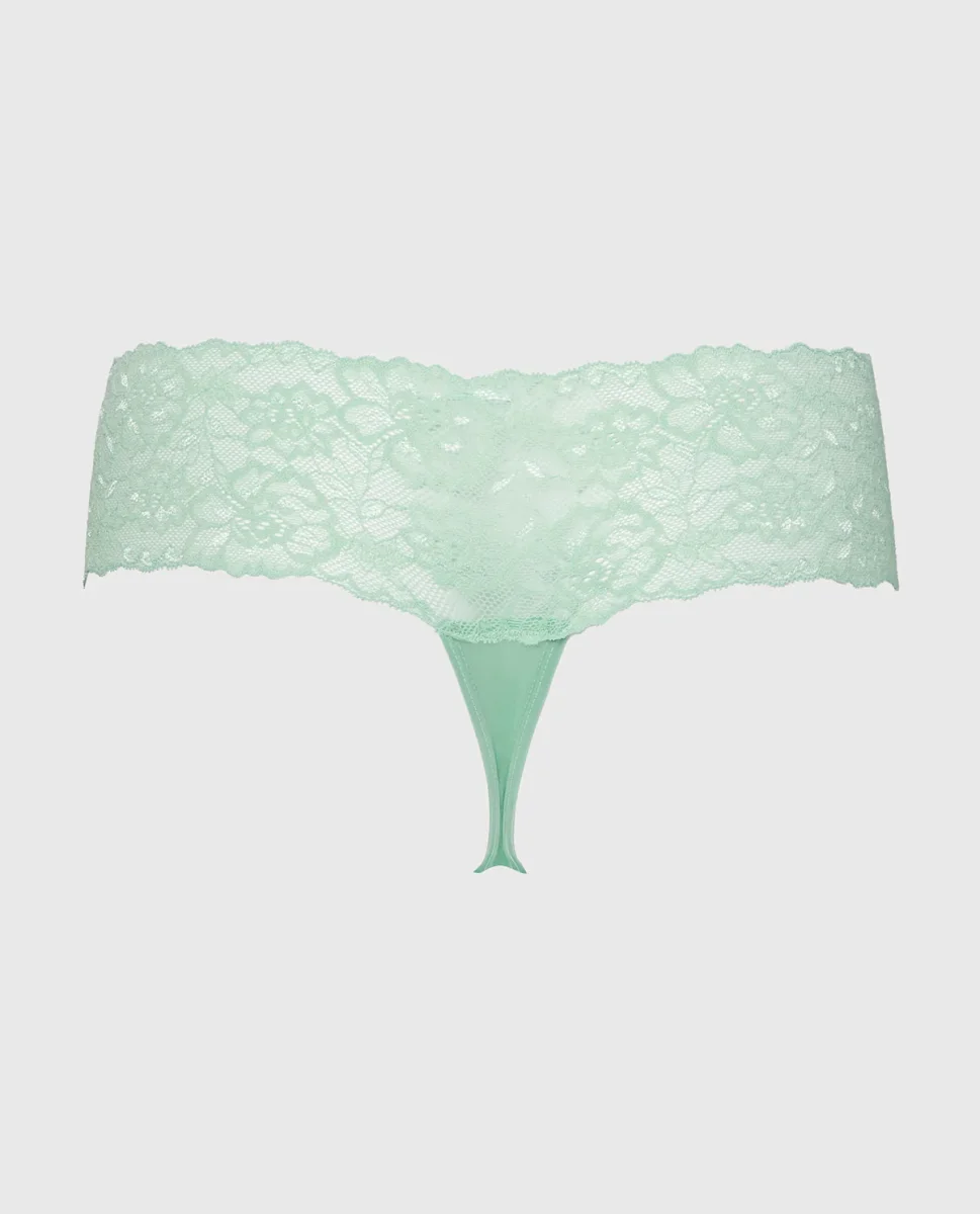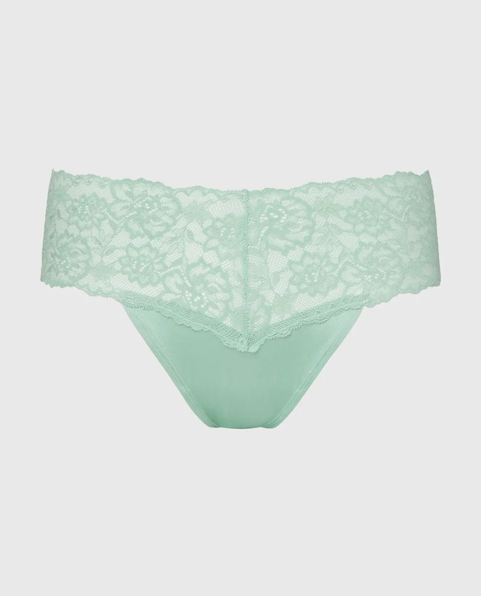 The Magnificent Lace Thong Panty in Hemlock combines thoughtful design and everyday function. Part of the luxe panties collection, crafted in premium microfiber.