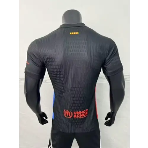 Les couleurs emblématiques blaugrana sont rehaussées par des détails graphiques subtils inspirés travis scott, avec des touches de rouge profond, des motifs évoquant le chapeau de paille et des éléments maritimes intégrés dans le design. Fabriqué en polyester technique, ce maillot assure un confort optimal grâce à sa légèreté et sa technologie anti-humidité.