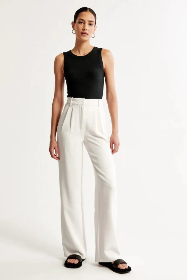 - Taille haute avec plis à l’avant pour une coupe ajustée