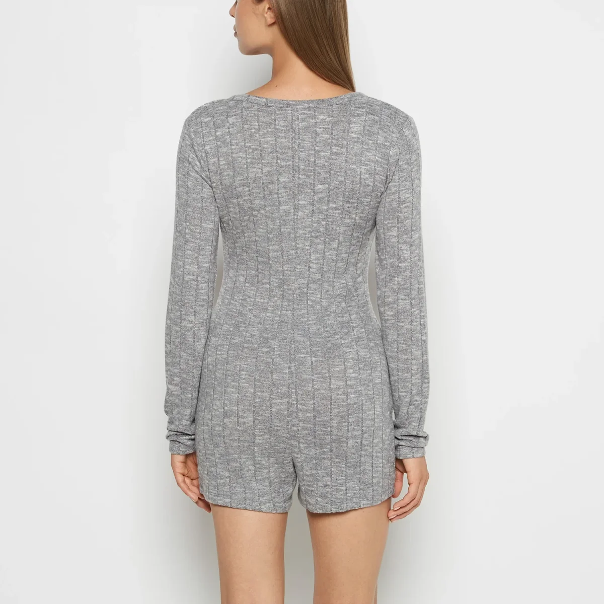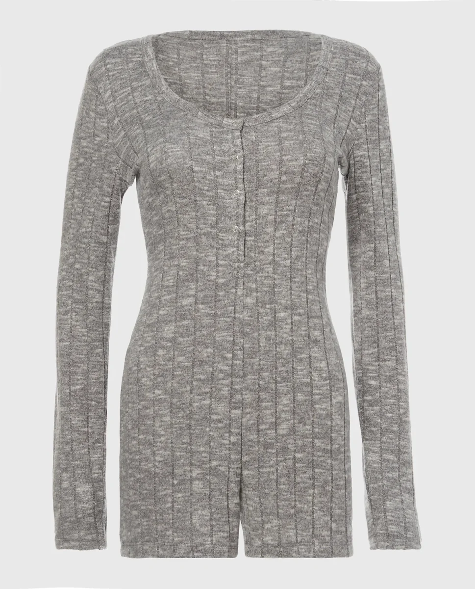 Placket Front Onesie is designed for cozy nights and stylish lounging. Light Grey Cozy brings warmth and charm to your sleepwear. Soft, dreamy, and irresistibly comfy.