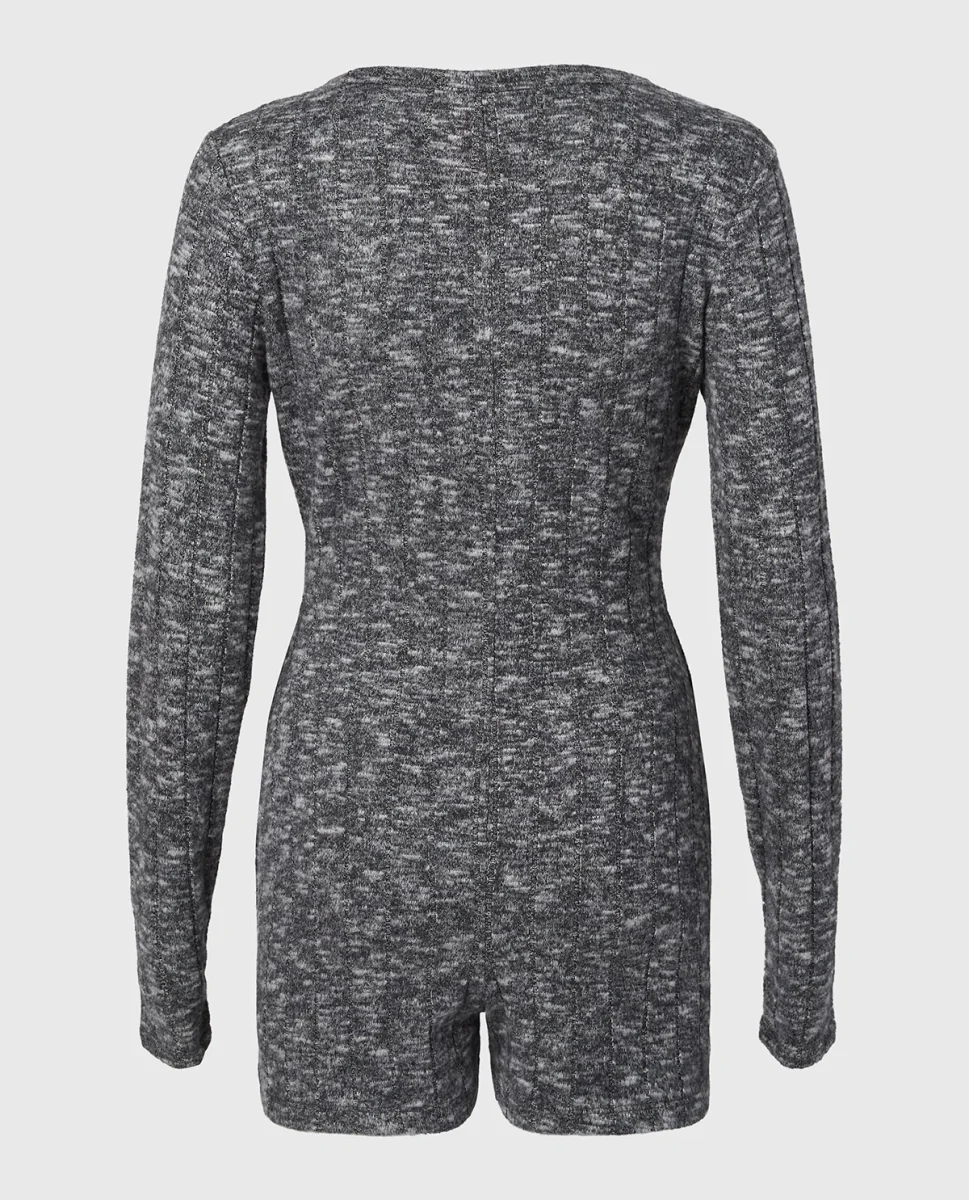 Placket Front Onsie in Tuxedo Black