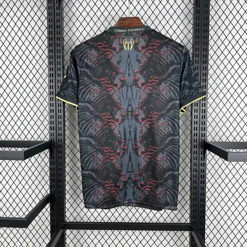 Habillé de noir profond avec des touches de rouge éclatant, ce maillot symbolise la puissance et la passion du PSG. Sa coupe ajustée assure un confort optimal et une grande liberté de mouvement. Fabriqué en polyester technique respirant, il garantit une évacuation efficace de l’humidité, même lors des moments d’intensité.