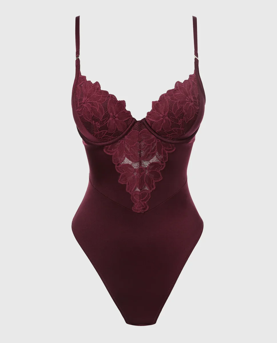 Push Up Demi bodysuit with reverie lace cup in Russian Ruby