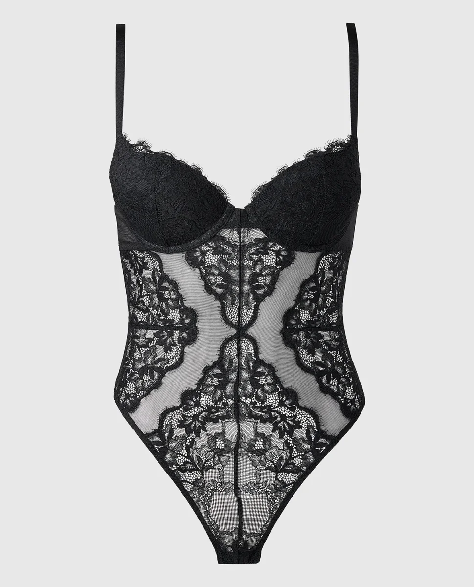 Afterglow Lace Bodysuit with Removable Pads in Tuexdo Black