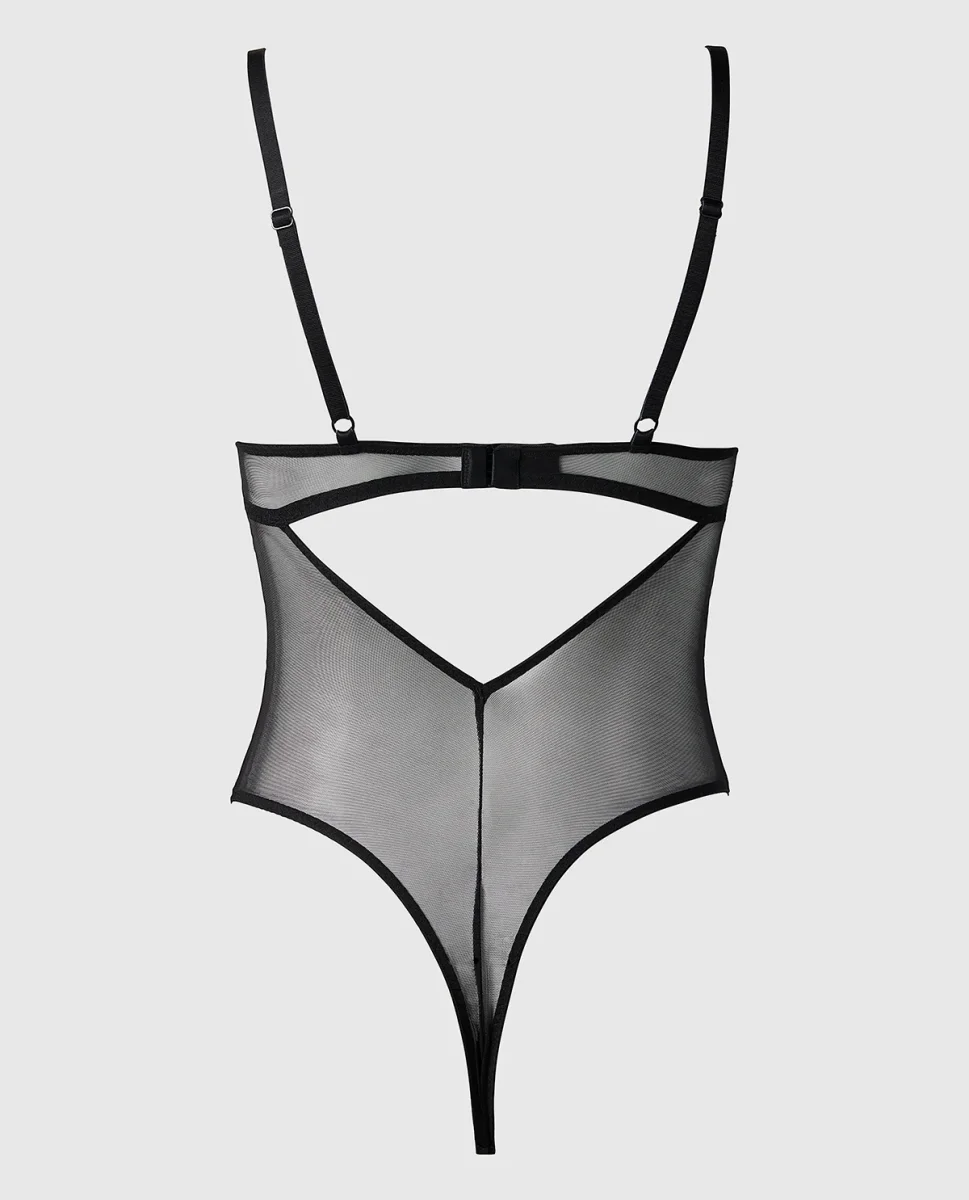 This bodysuit with beautiful lace detailing will be your new go to! Unlined lace body Mesh back Lace detailing Adjustable bra straps Thong bottom Back closure Imported polyamide, elastane