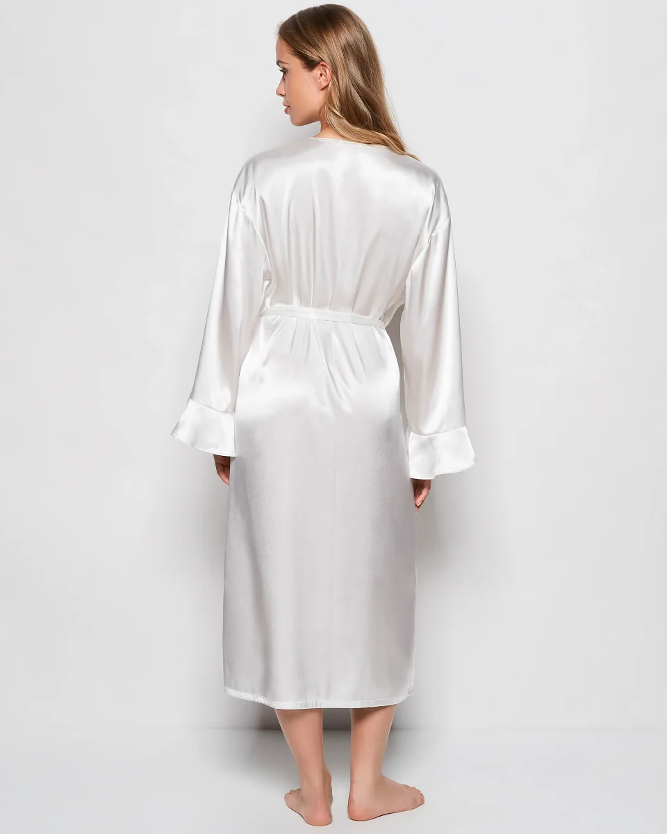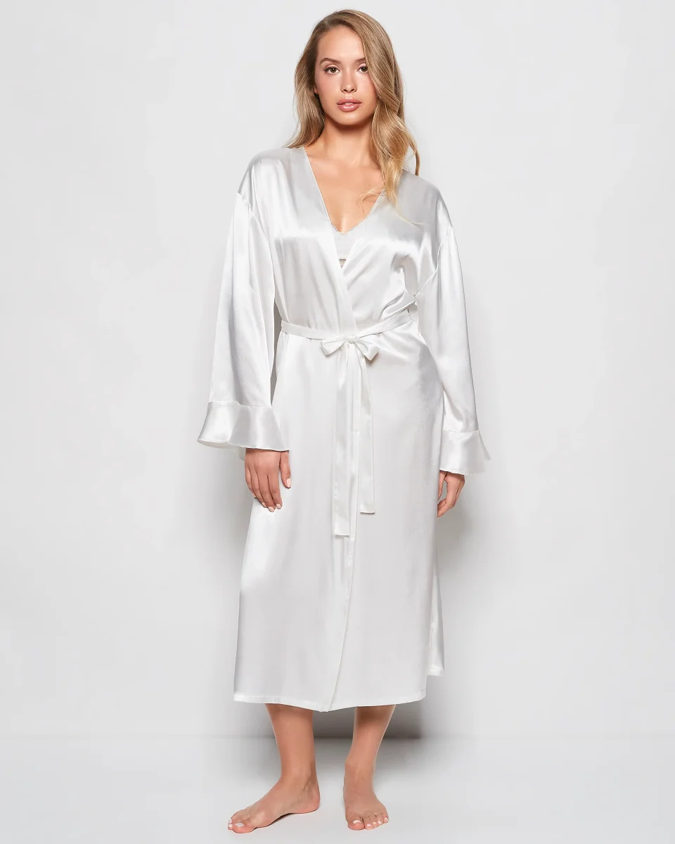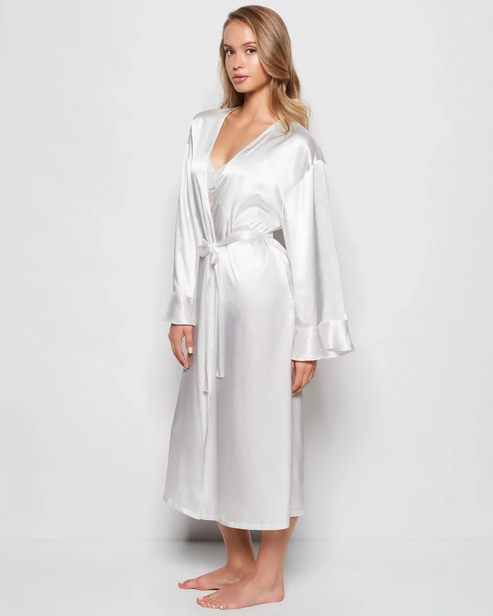 Pamper yourself in this Ivory Satin Mid Length Robe. Designed with long sleeves and a mid length, if is perfect for relaxing and having a night in.