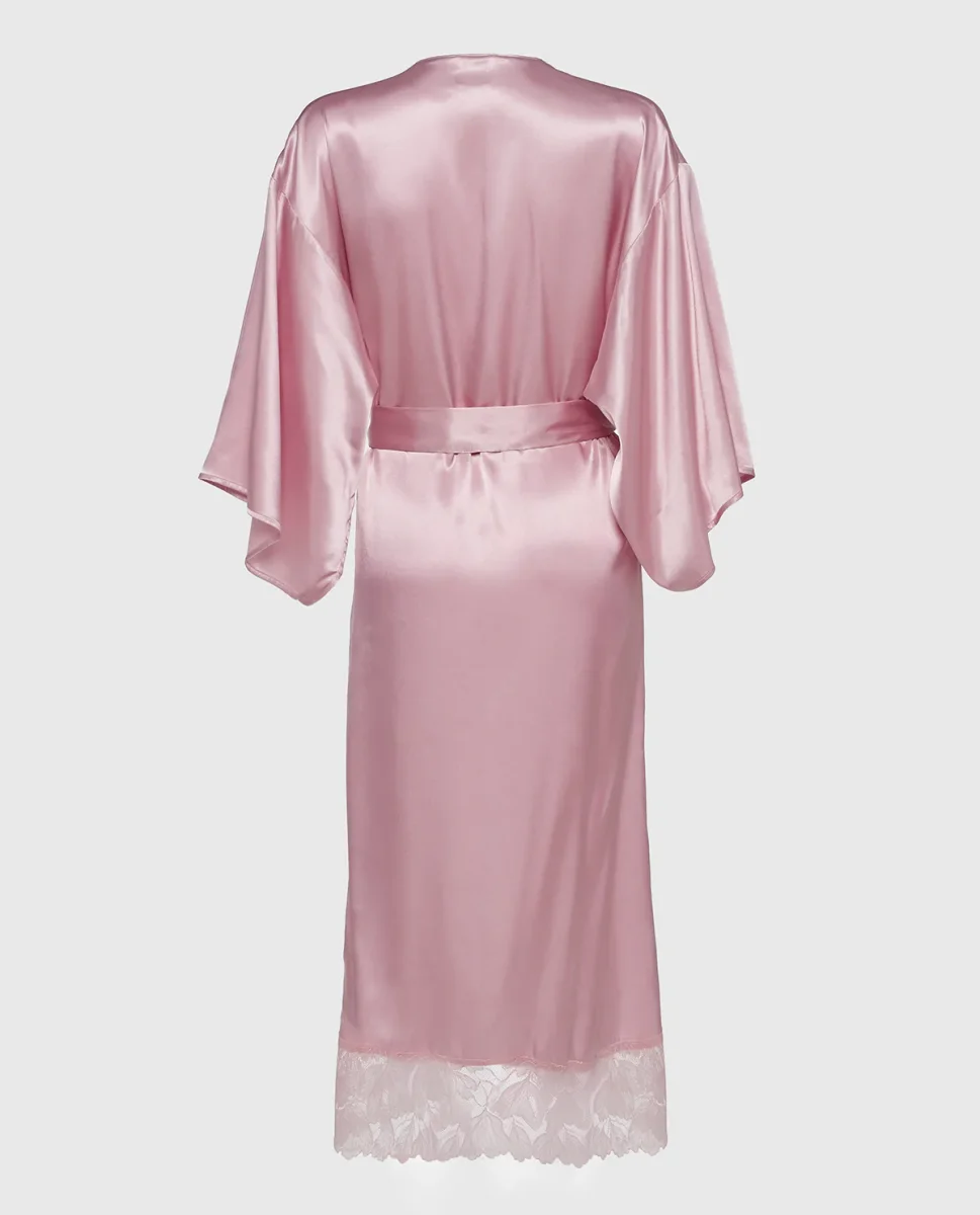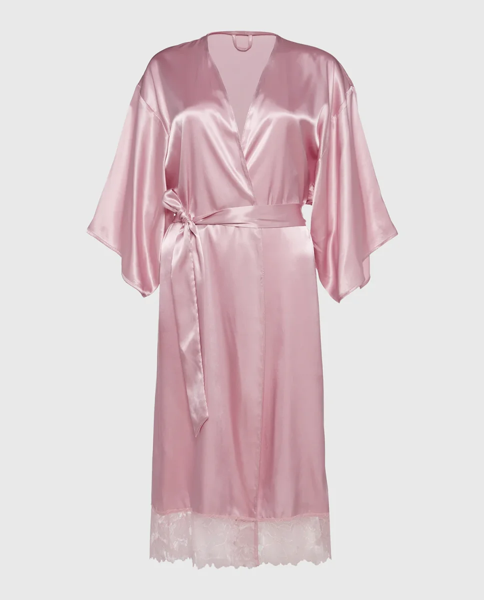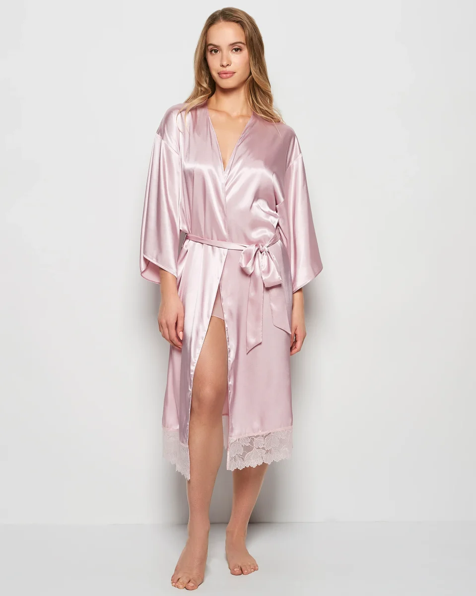 Pamper yourself in this Iced Lilac Satin Mid Length Robe with Lace. Designed with long sleeves and lace detailing, if is perfect for relaxing day or night.