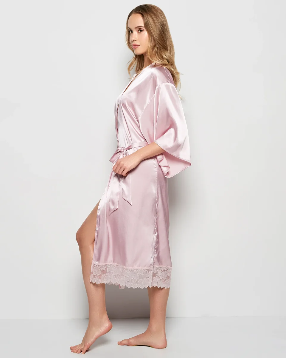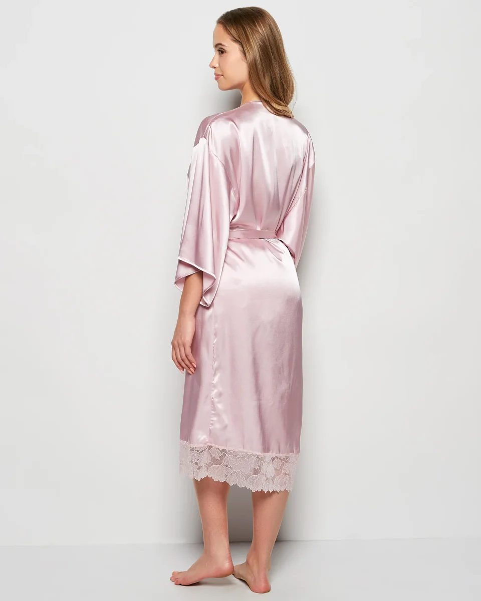 Satin Mid Length Robe with Lace in Iced Lilac