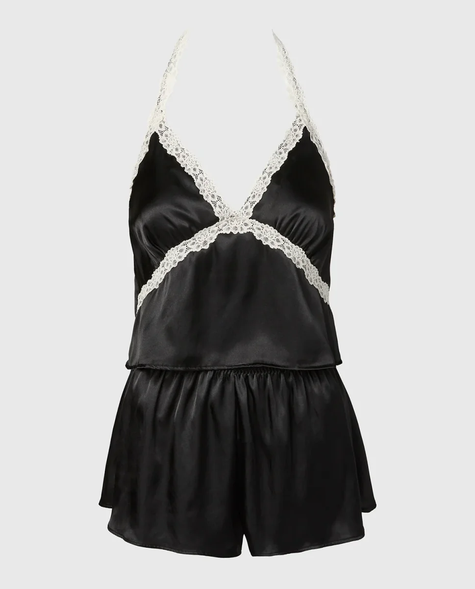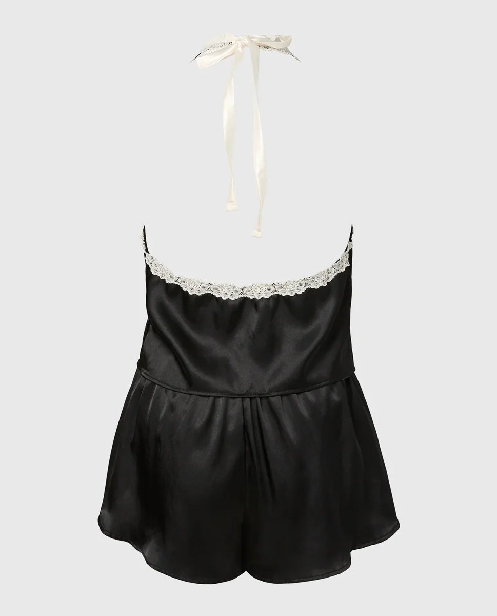 Discover the Satin PJ Set With Wicked Lace Trim in Tuxedo Black, Part of the lingerie collection, crafted in premium satin, featuring a unlined lining for a smooth feel, with a wireless design for gentle support. Designed for effortless comfort and everyday confidence.