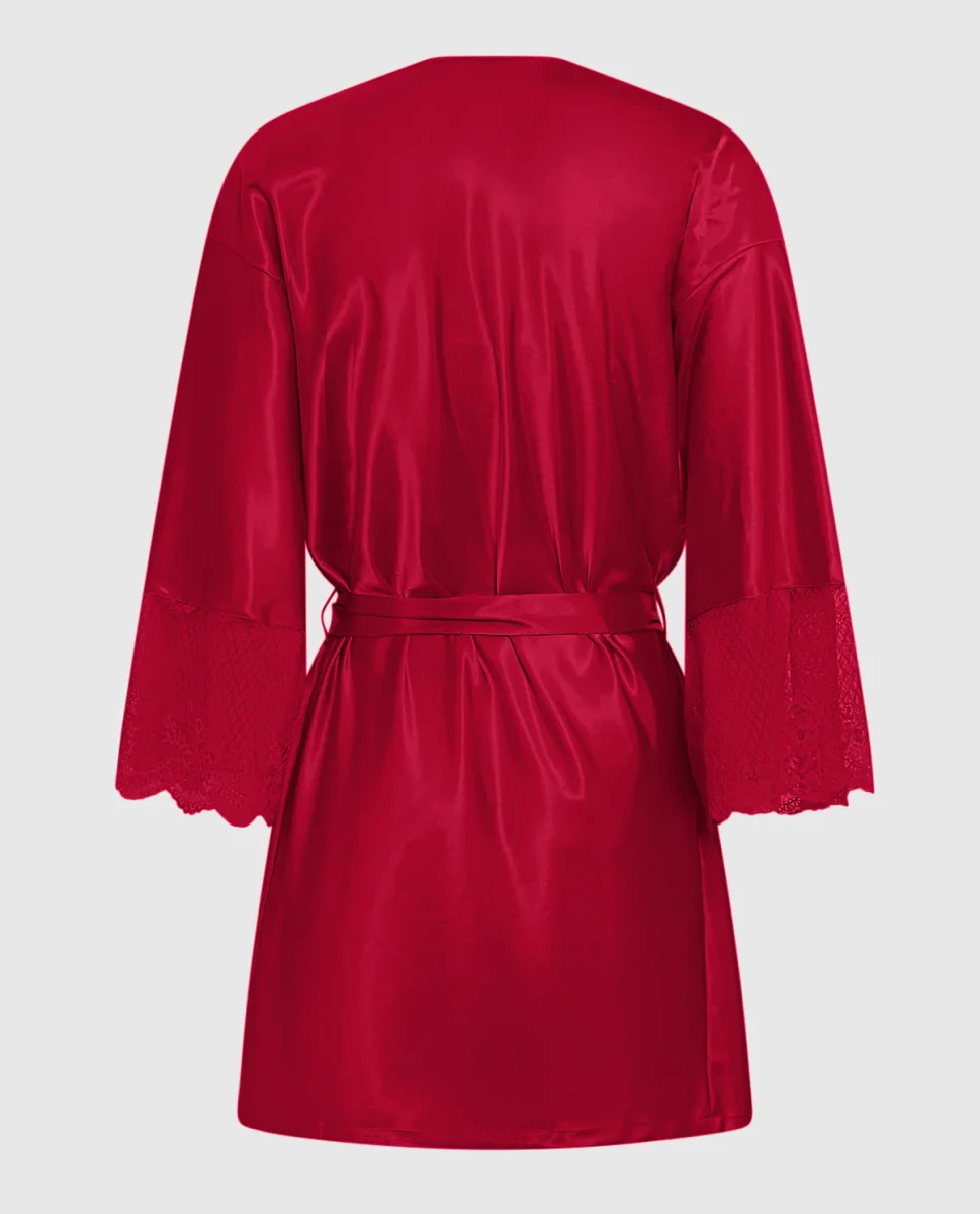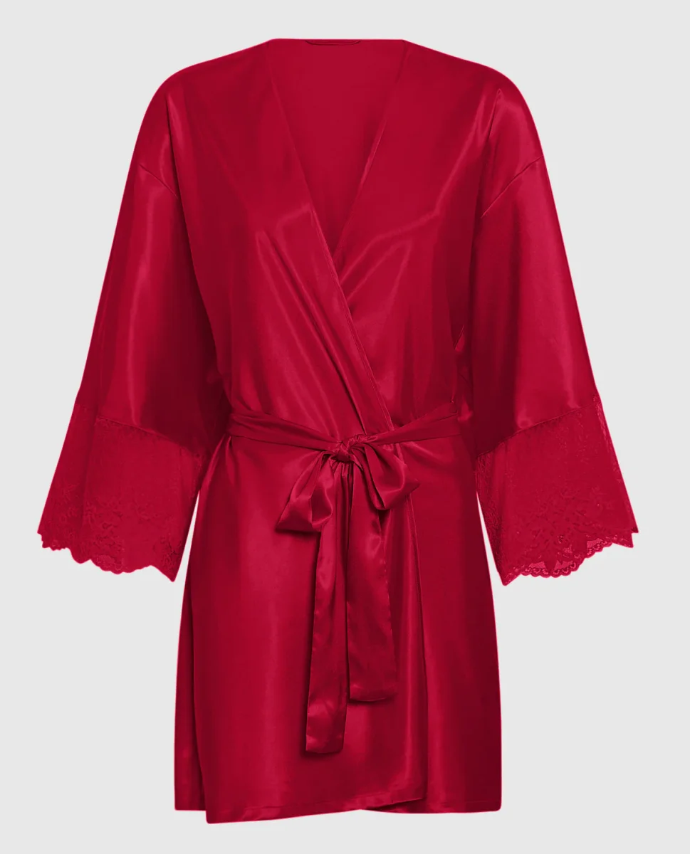 Satin Robe with Lace Trim Sleeve in Cosmo Red