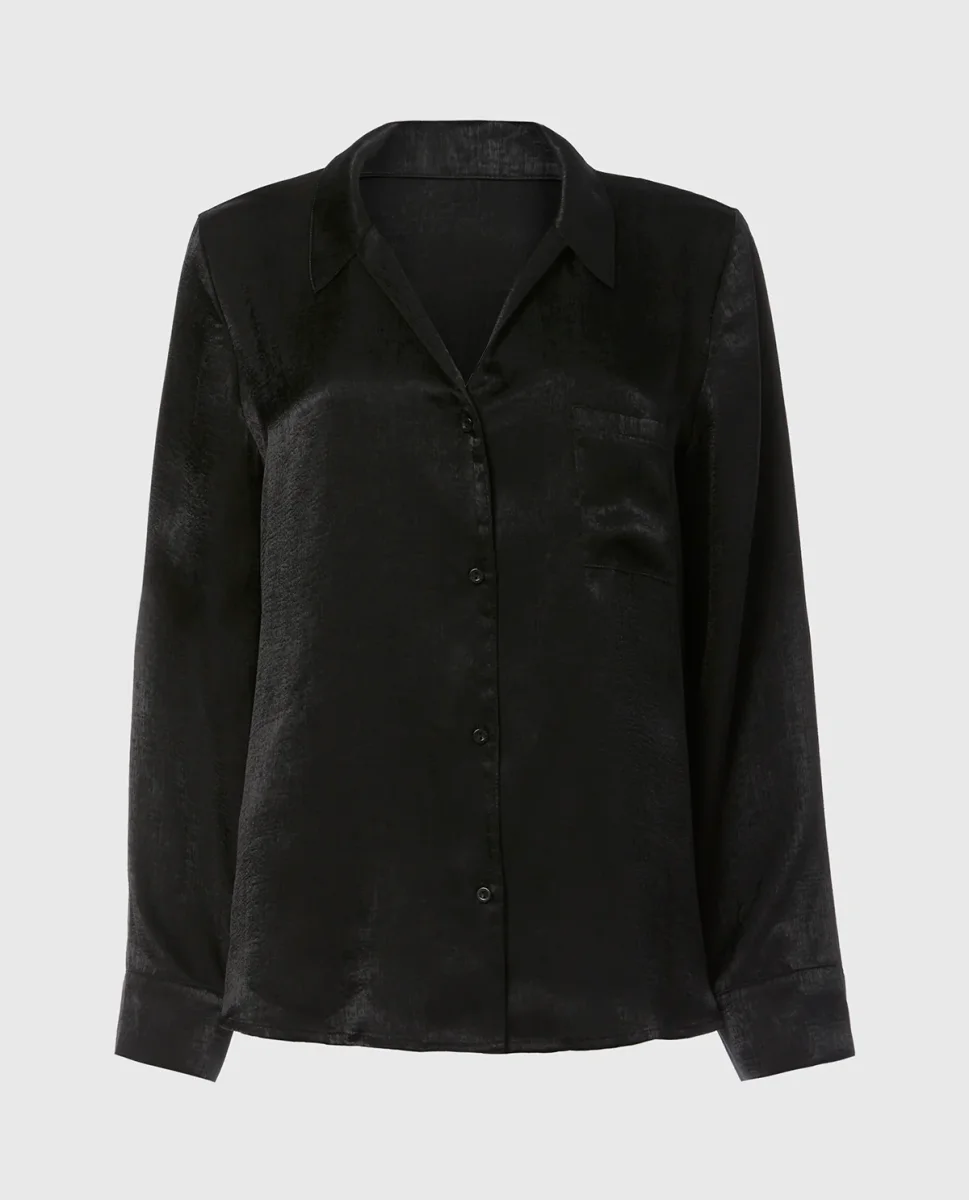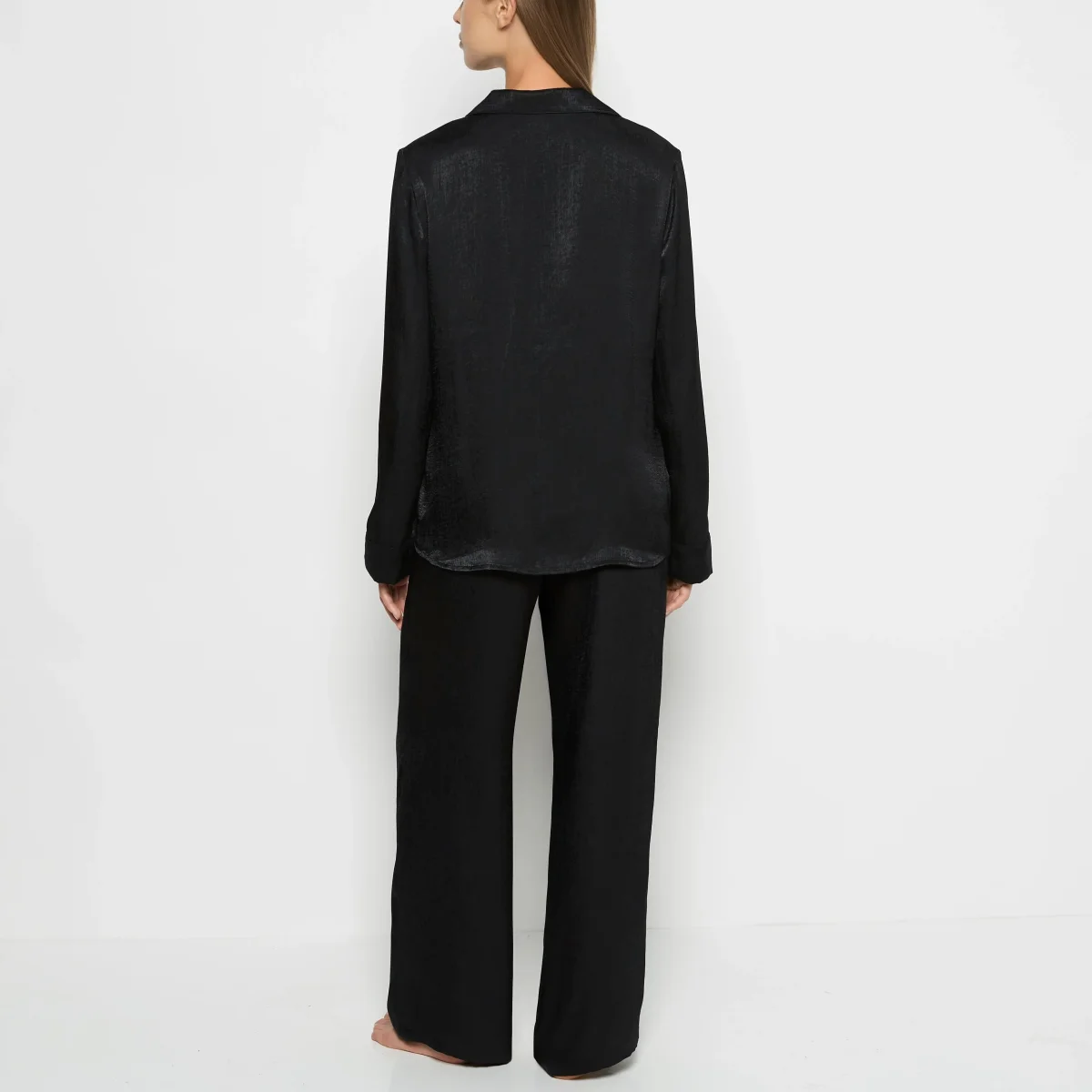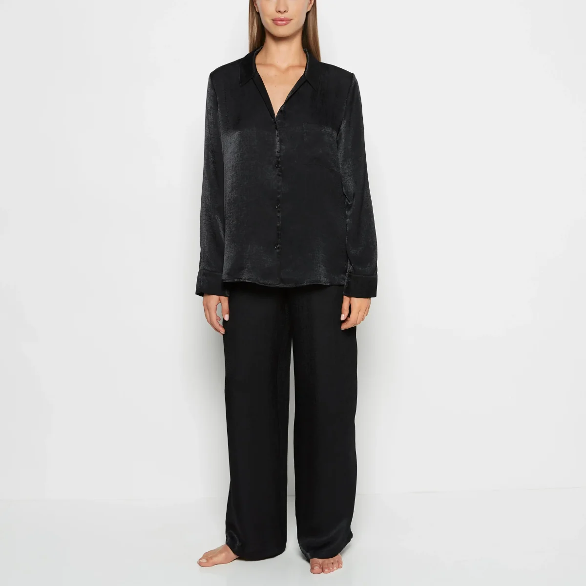 Satin Sleep shirt with button front is designed for cozy nights and stylish lounging. Tuxedo Black brings warmth and charm to your sleepwear. Soft, dreamy, and irresistibly comfy.