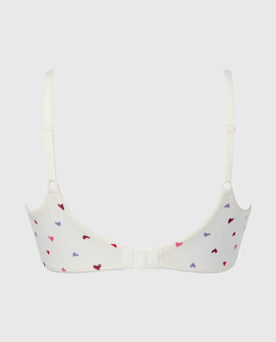 The Scoop Neck Cotton Bralette with Picot Trim in Tossed Heart brings playful comfort with charming details. This product features a flattering scoop neck cut adorned with delicate picot trim, all in a whimsical Tossed Heart print that adds joy to your everyday essentials.