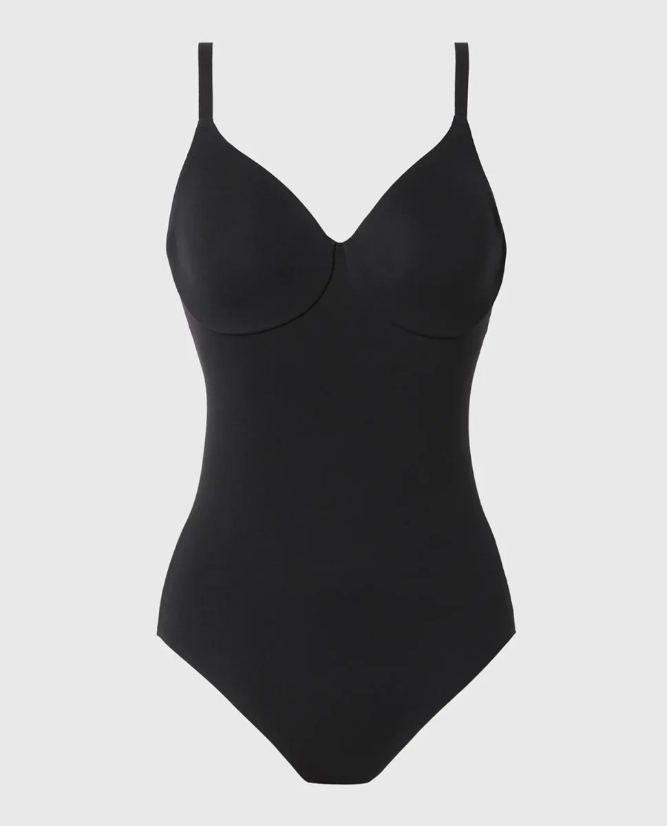 Command attention in this tuxedo black sculpting bodysuit, engineered to smooth and shape your silhouette with invisible confidence. The sleek design hugs your curves while the strategic construction creates a polished line under any outfit. Crafted for all-day wear, it moves with you without riding up or shifting.