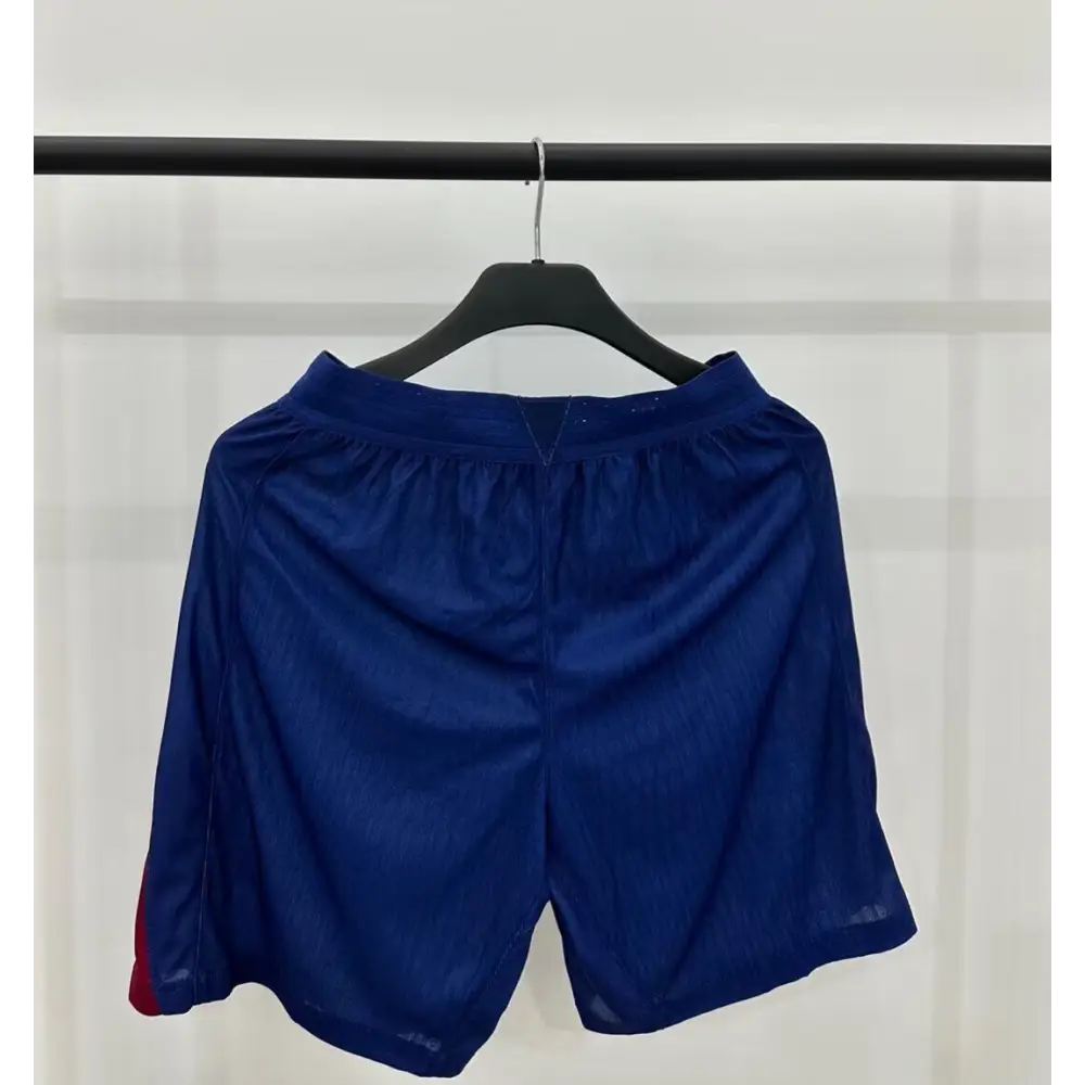 Ce short arbore un bleu marine intense, rehaussé de détails grenat discrets sur les côtés, dans le respect de l’esthétique traditionnelle du Barça.