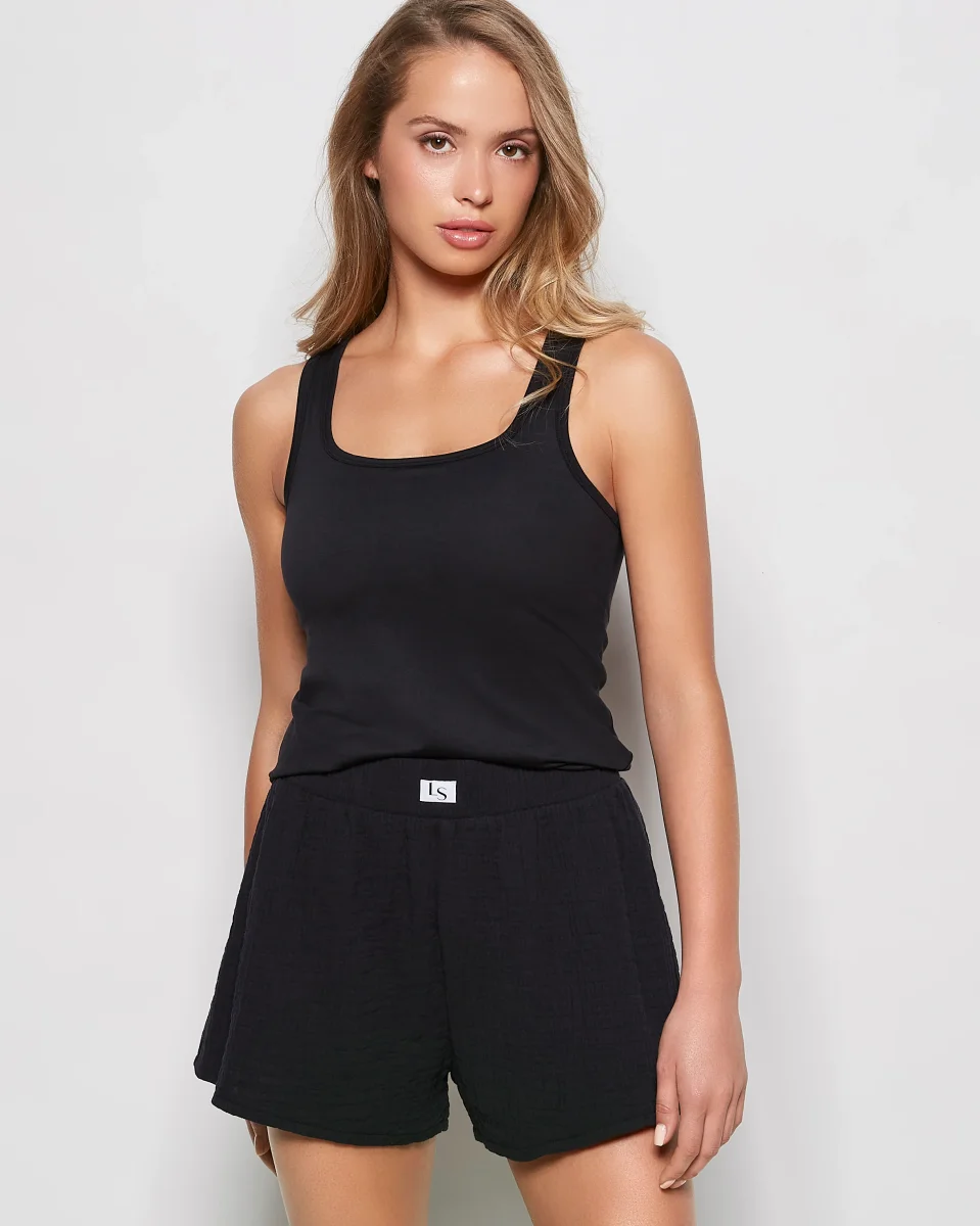 Our Black Sleep Tank is made for sweet dreams. Whether you’re lounging or drifting off to sleep, this cotton top is all about relaxed luxury. Pair with the matching bottoms for a cohesive look.