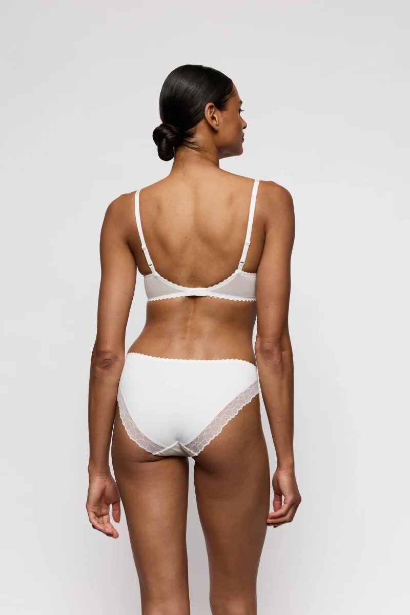 Sa coupe délicatement échancrée sublime les courbes avec légèreté, tout en restant confortable du matin au soir. Les finitions en dentelle fine apportent cette touche raffinée et précieuse, signature de la ligne. Invisible sous les vêtements, il épouse la silhouette sans marquer.