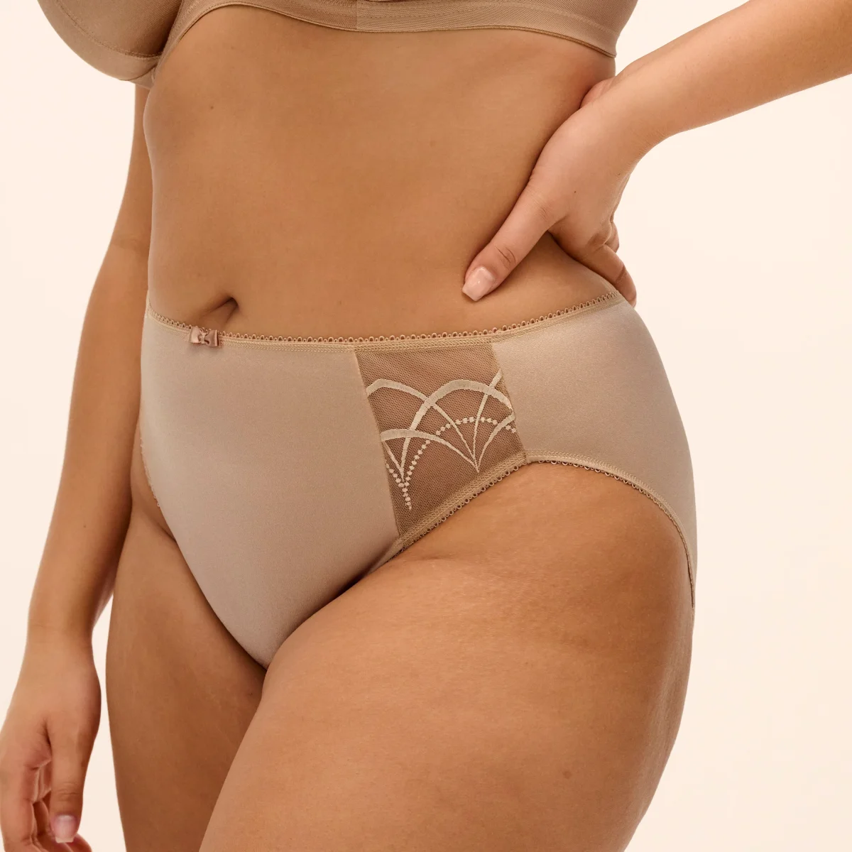 Sa coupe enveloppante met en valeur les courbes tout en assurant une sensation de sécurité et de douceur sur la peau. À l’avant, la broderie transparente signature apporte une touche raffinée et féminine, tout en restant discrète sous les vêtements.