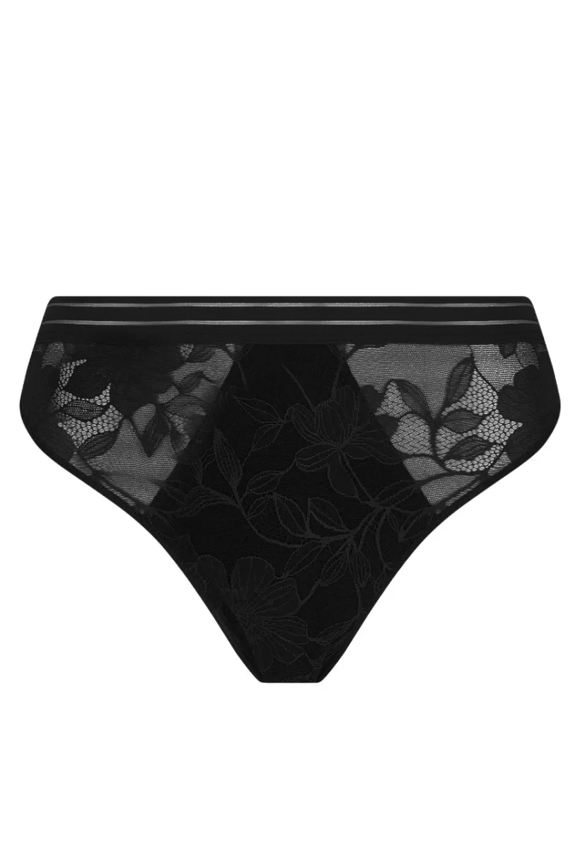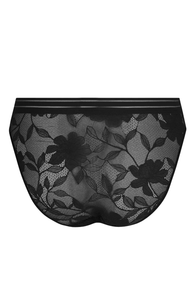 Sa dentelle souple et son dos emboîtant assurent un confort quotidien, tandis que sa légère échancrure à l’avant dégage la cuisse avec une touche de féminité.
