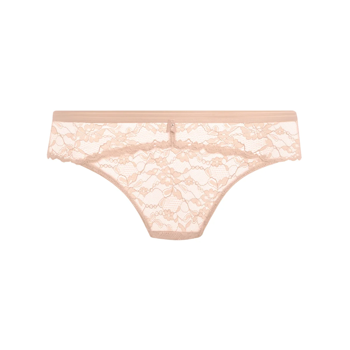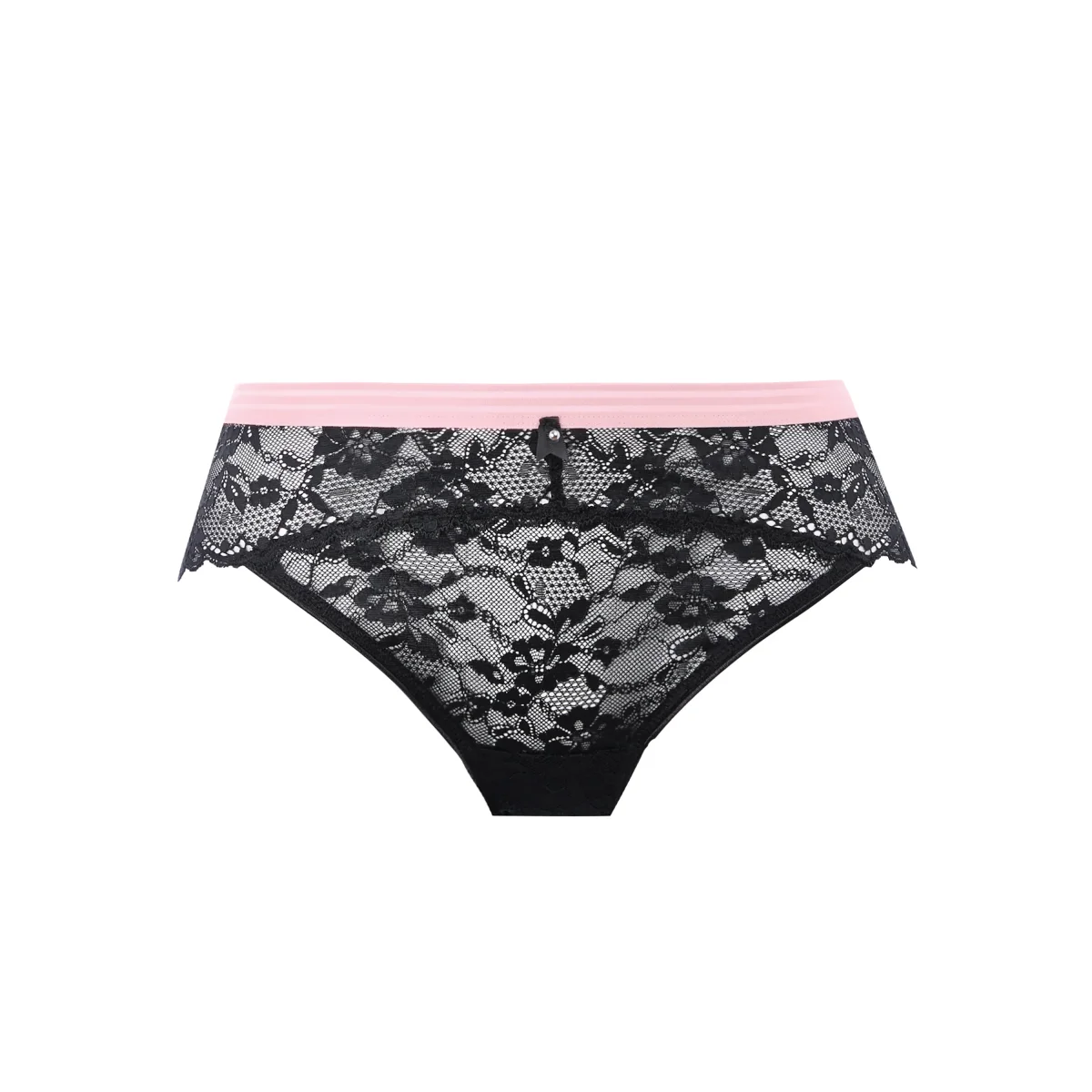 Sa dentelle stretch douce et résistante épouse les courbes sans marquer, offrant confort et légèreté tout au long de la journée. La ceinture élastique contrastée à rayures semi-ajourées apporte une touche graphique contemporaine tout en assurant un maintien parfait sans comprimer.