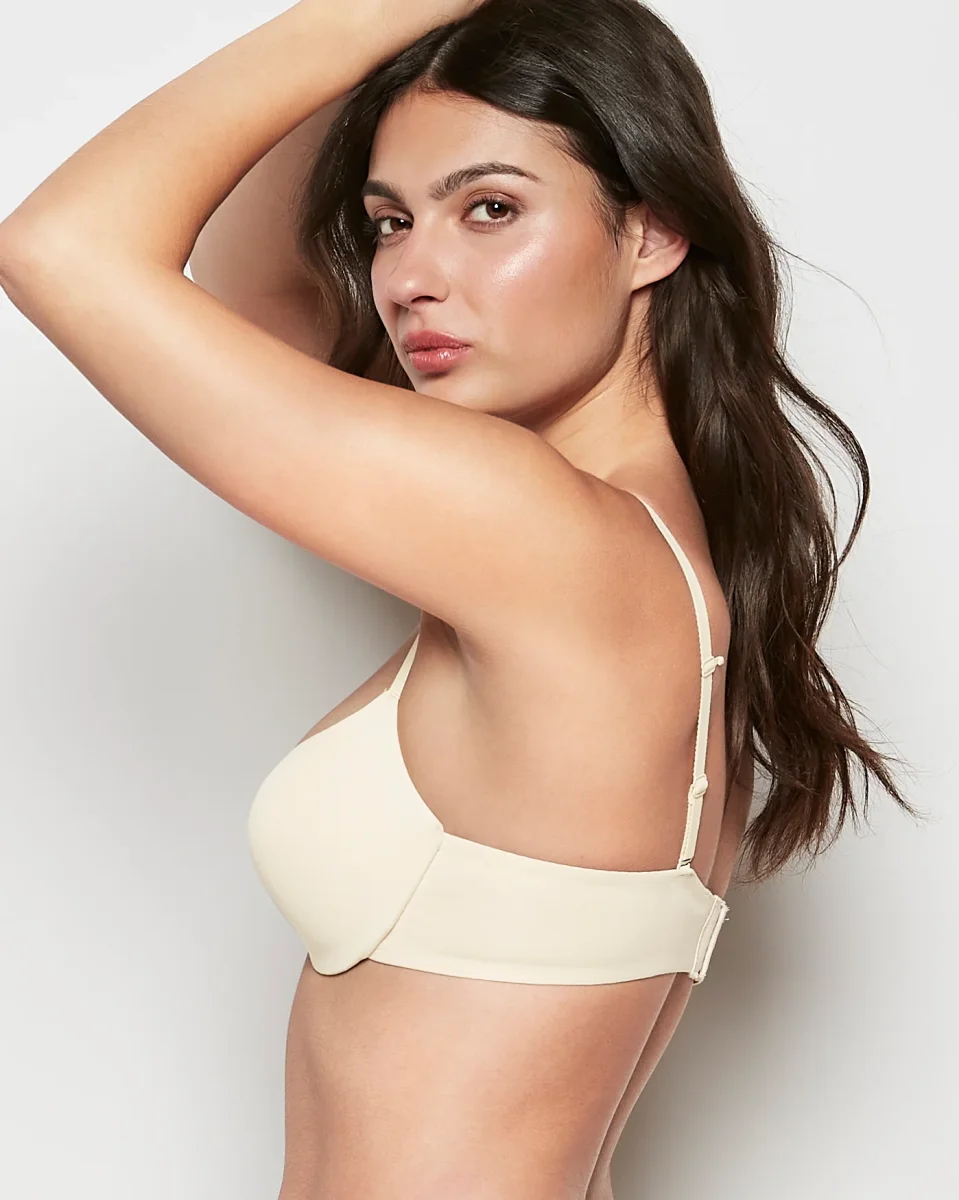 Smooth and soft to the touch this Oatmeal Heather Smooth Comfort Push Up Bra has it all! With push up cups for a sexy lift. Cushioned underwire and padding for a sexy lift Wide wings for smoothing Adjustable bra straps Imported polyester, elastane