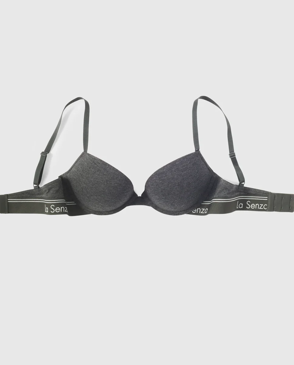 Meet the perfect t-shirt bra with super smooth cotton and a trendy logo waistband. Integrated push up cups Allover heather cotton Underwire for support Adjustable bra straps Logo band Back closure Imported cotton, elastane