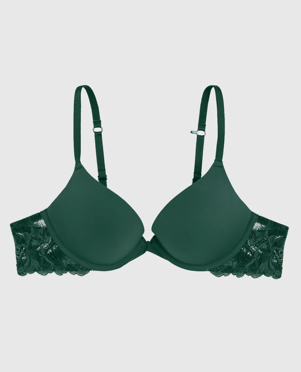 The perfect bra for everyday! Elevate your wardrobe staples with this push up bra decorated with smooth cups, a lace wing and recycled materials.