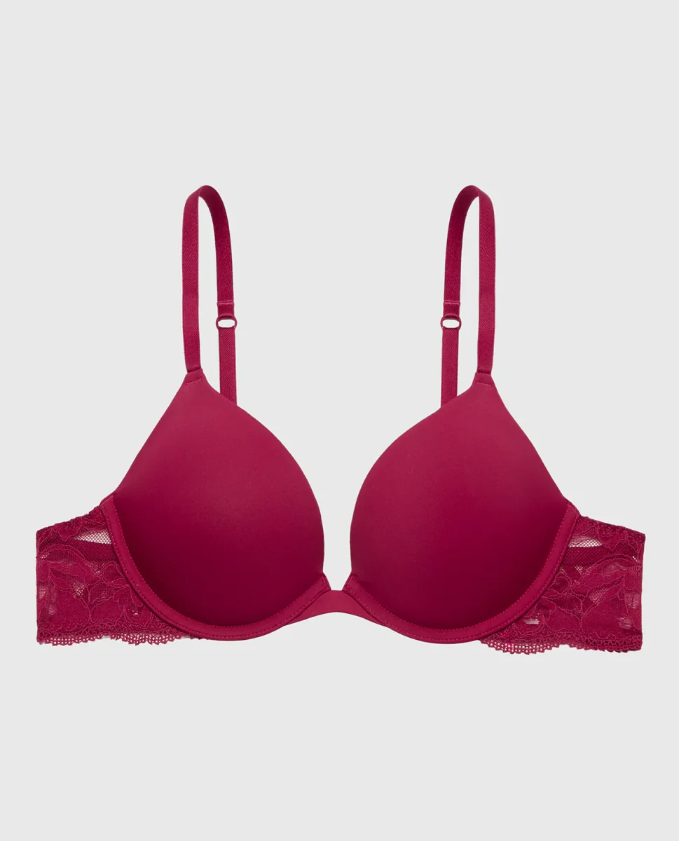 Smooth Push Up Plunge Bra with Charmed Lace Wing in Plum Rose Experience seamless elegance with this smooth push up plunge bra, featuring delicate charmed lace wing details in rich Plum Rose. The microfiber construction delivers a polished look while the push up lining creates a lifted, confident silhouette perfect for everyday wear or special moments.