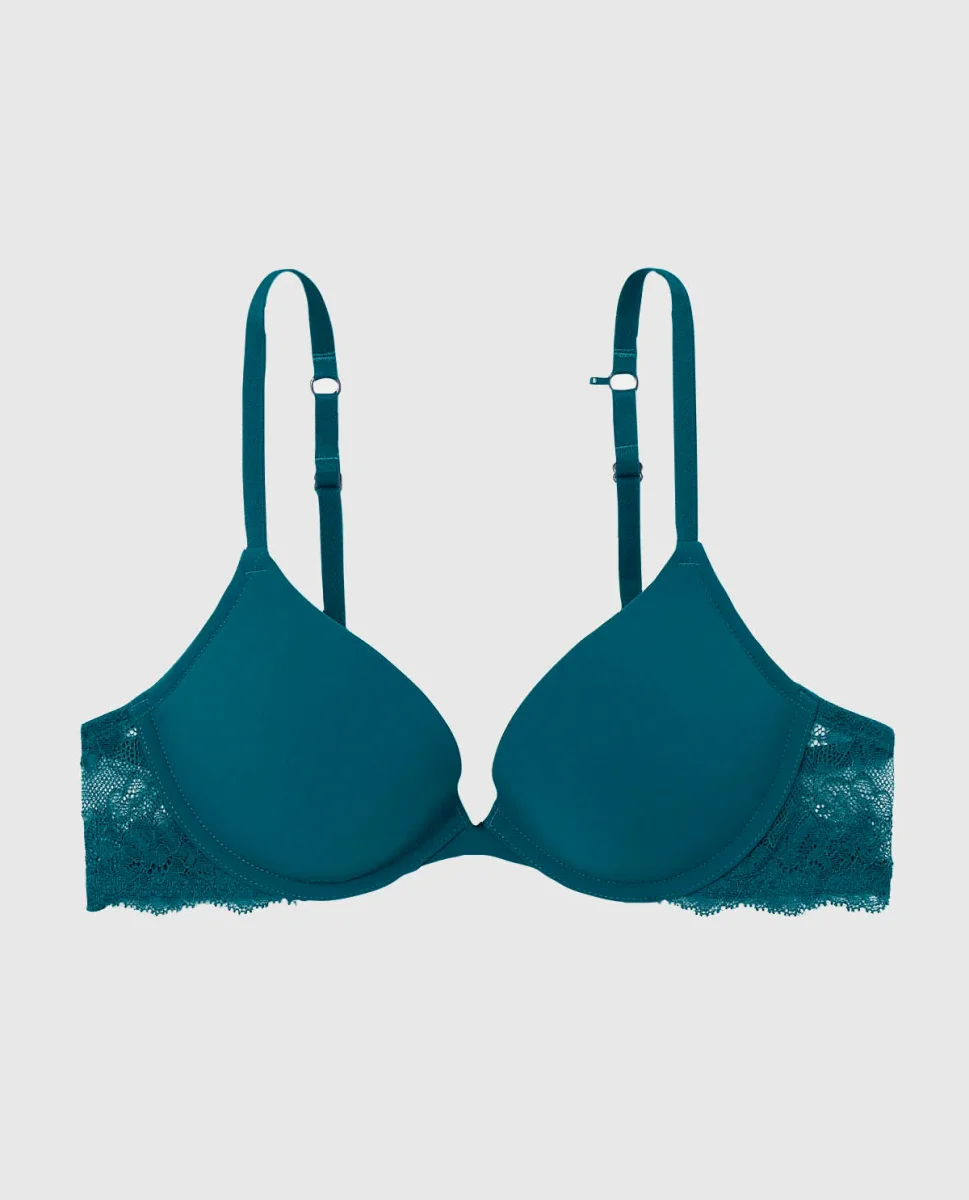 Elevate your day with this sustainable and beautiful push up bra decorated with floral lace along the wing and recycled materials.
