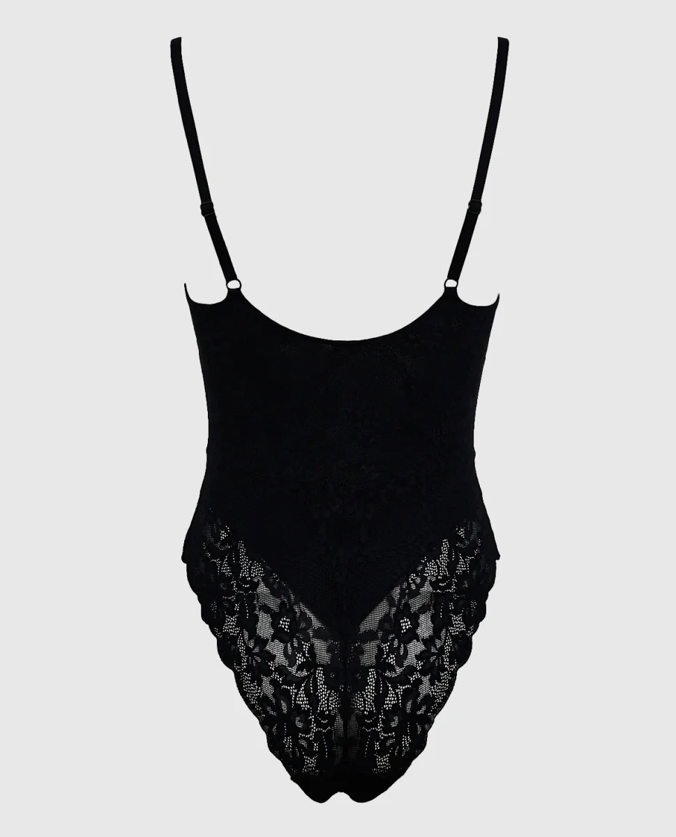 Your new shapewear essential! This bodysuit is designed with a plunging neckline and an allover lace body to give you a smooth look. Perfect to wear under garments or to pair with your favorite pant to wear out!